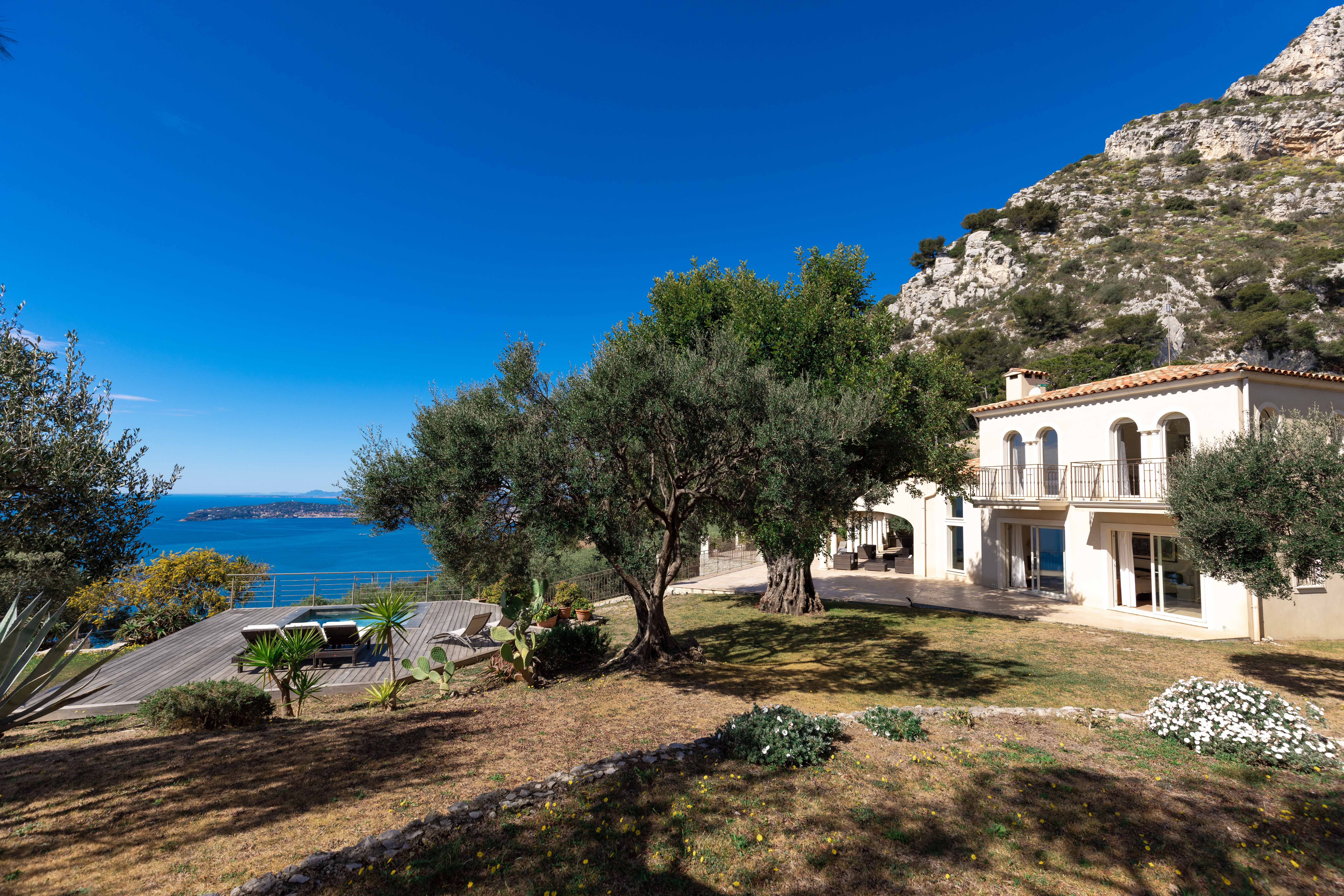 La propriété bénéficie de belles terrasses, d'une vue panoramique sur la mer, le Cap Ferrat et la Principauté de Monaco.