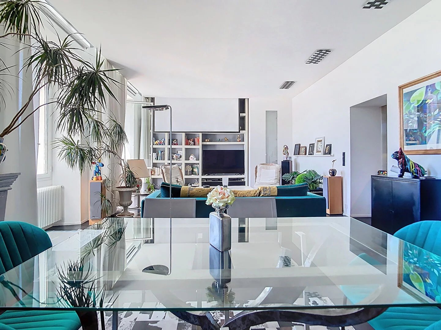Cet appartement aux volumes élégants incarne parfaitement l’art de vivre cannois. Il s’ouvre sur une majestueuse entrée, menant à un séjour / salle à manger climatisé, particulièrement lumineux, exposé Sud, offrant une vue mer et une vue dégagée sur le parc.