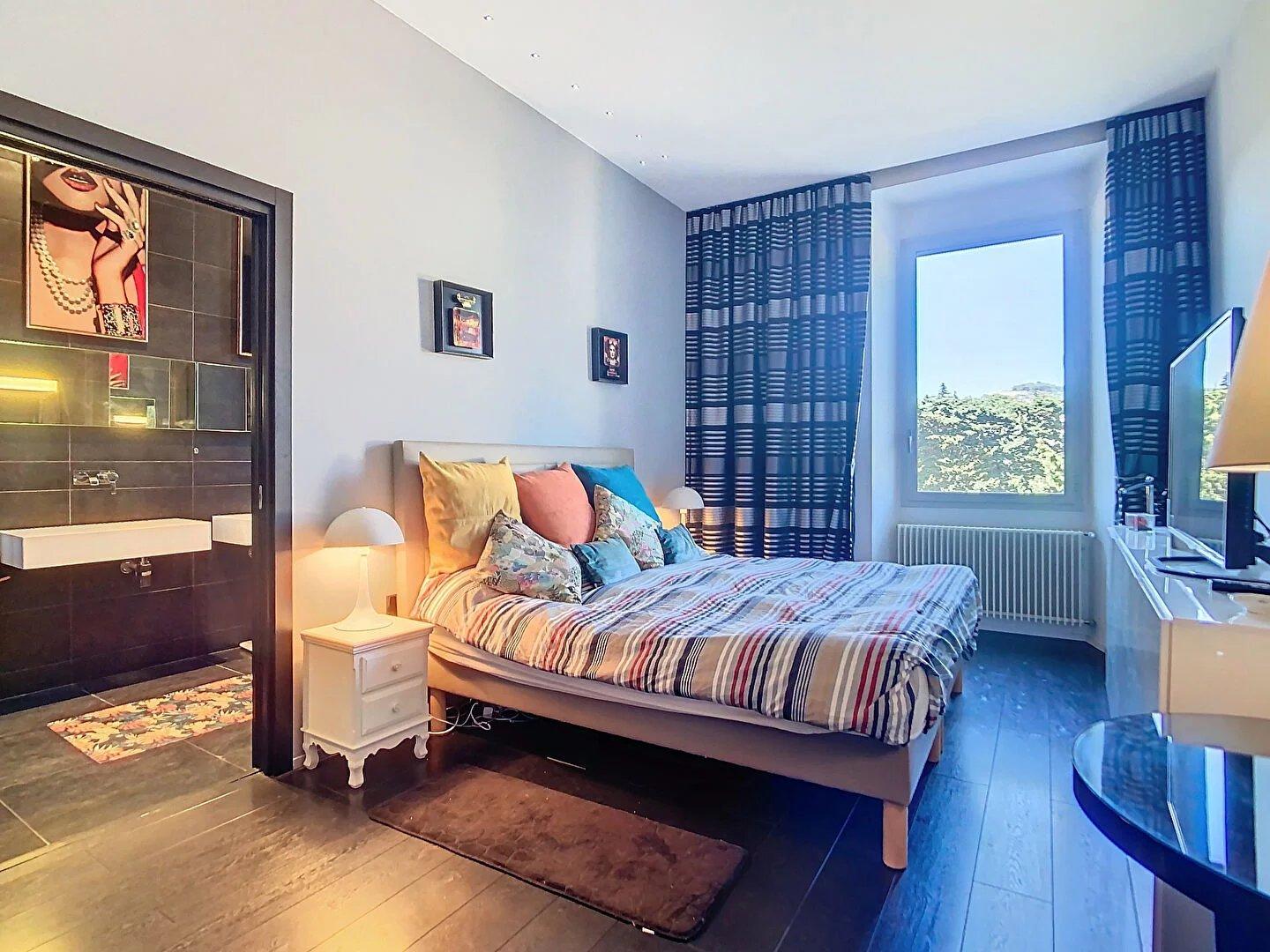 La suite principale, véritable lieu de détente, dispose de sa salle de bains privative et de WC. Une seconde chambre, tout aussi élégante, est dotée de sa salle d’eau, de WC et d’un dressing sur mesure.