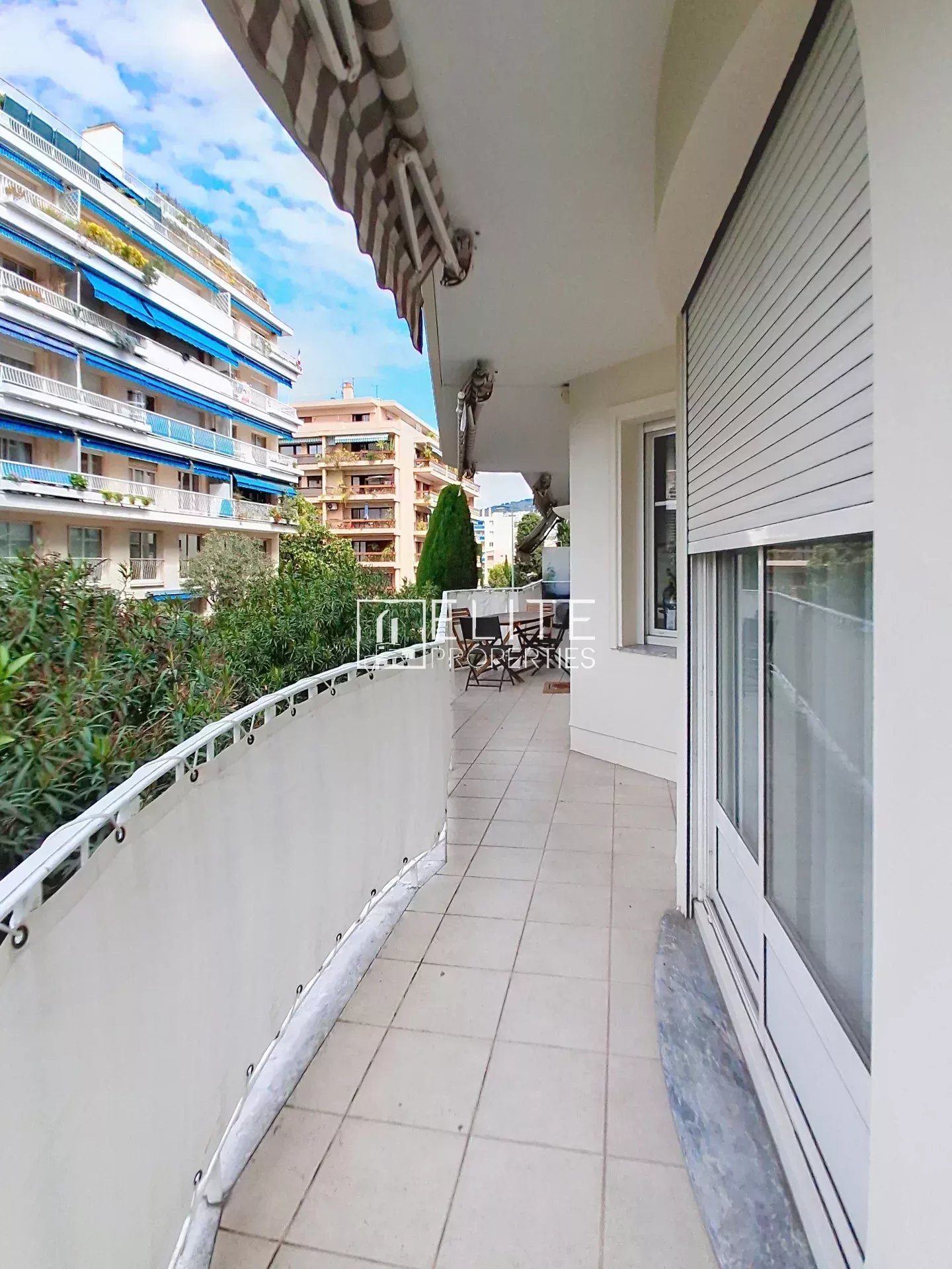 Une magnifique terrasse filante de 30 m², bordée de stores bannes, idéale pour profiter du soleil et de la vue sur le parc