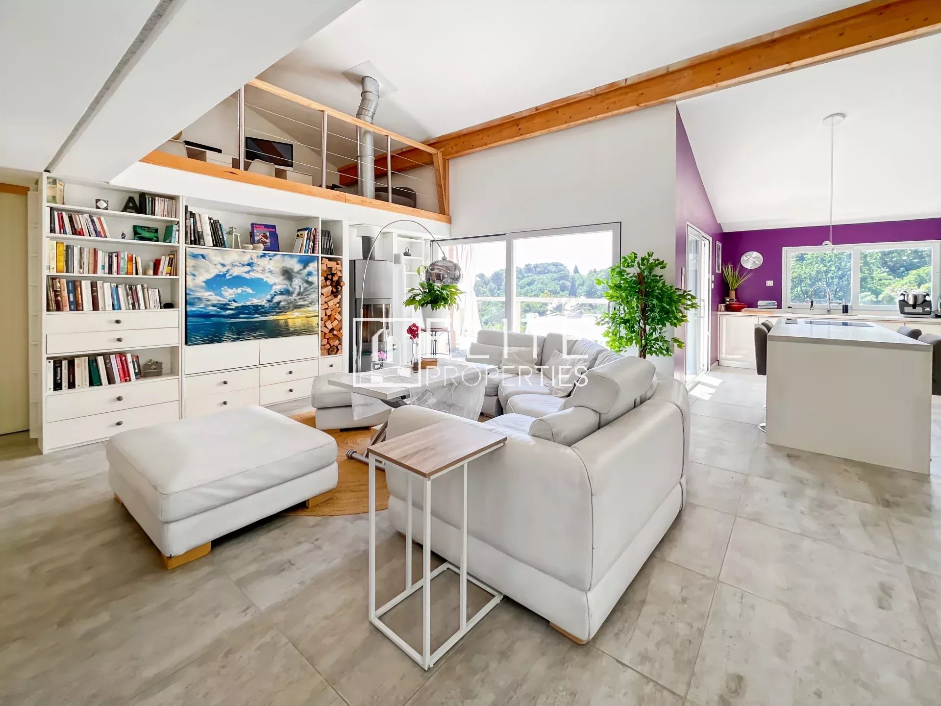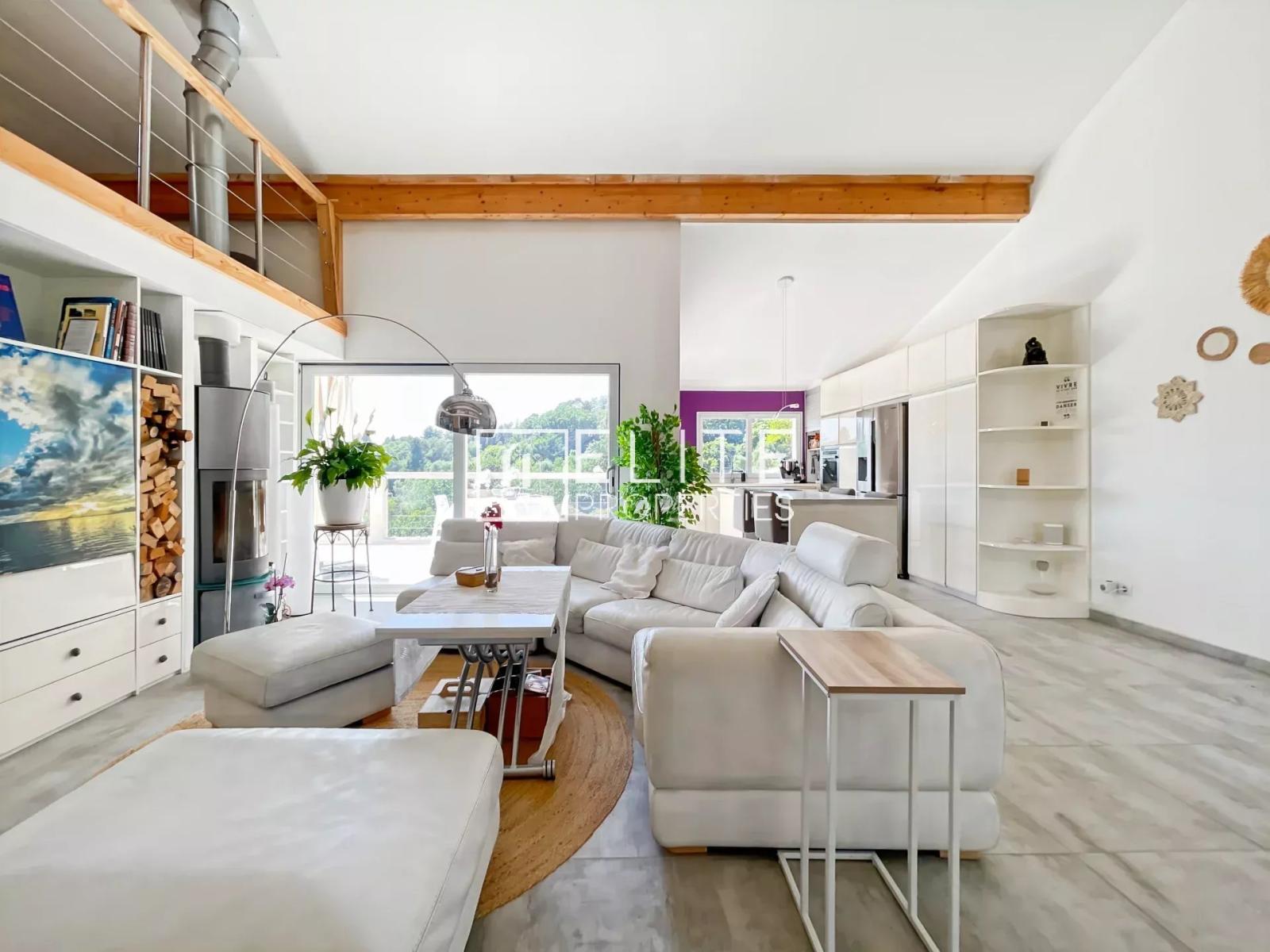 - Premier niveau : Un vaste séjour traversant avec une hauteur cathédrale et une élégante mezzanine accueillent un piano à queue, un espace bureau et un grand dressing. La cuisine ouverte, au design contemporain et entièrement équipée, s'ouvre sur une belle terrasse plein sud. Une suite parentale avec salle de bain vient parfaire ce niveau.