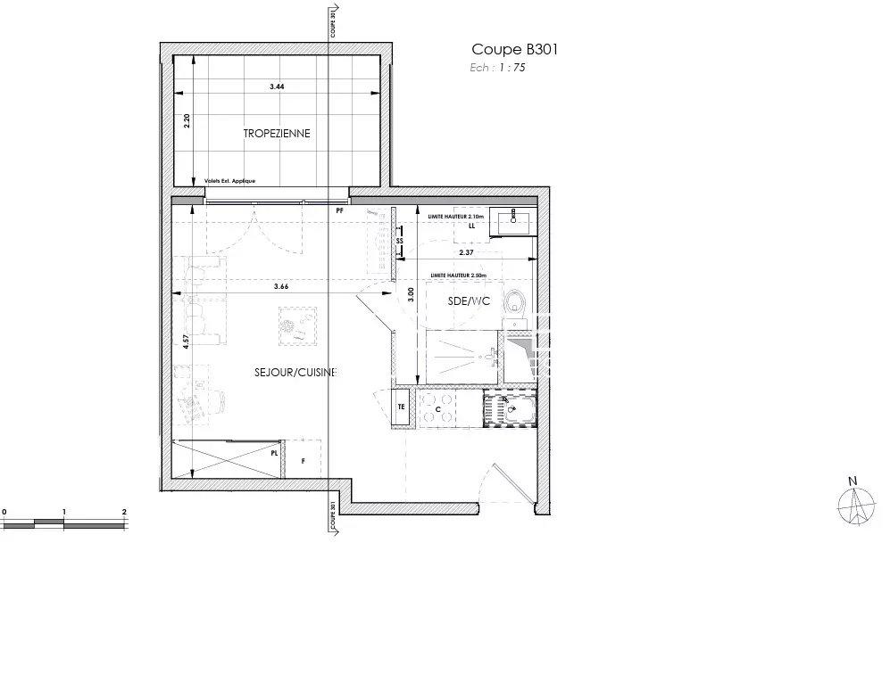 Cet studio de 28m² en dernier étage se compose d’un séjour avec cuisine aménagée, d’une salle d'eau avec son toilette, ainsi que d’une terrasse tropezienne.