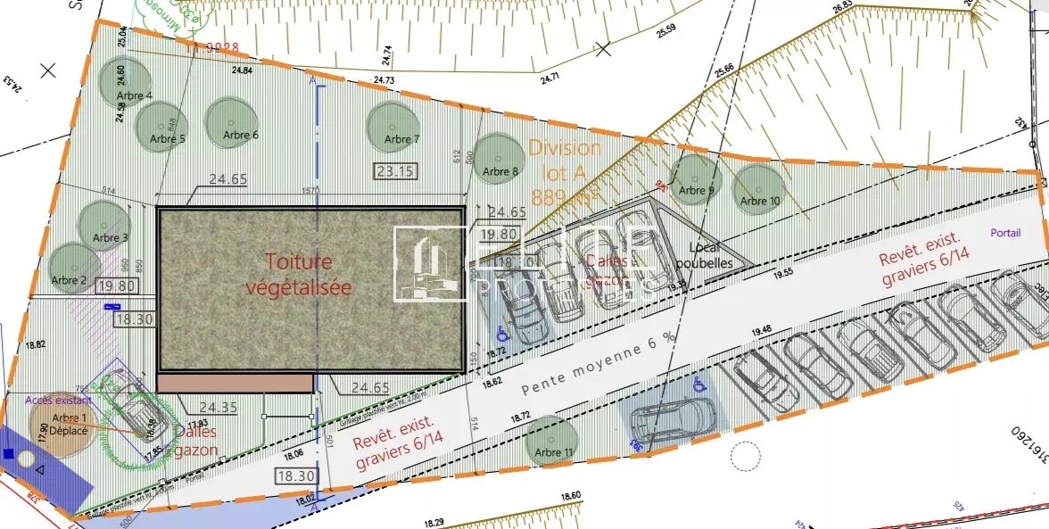 Libre constructeur, pour un immeuble Mixte, avec places de stationnements. Parcelle de 889m2 avec une emprise au sol de 15% ( 133,45m2 ),
