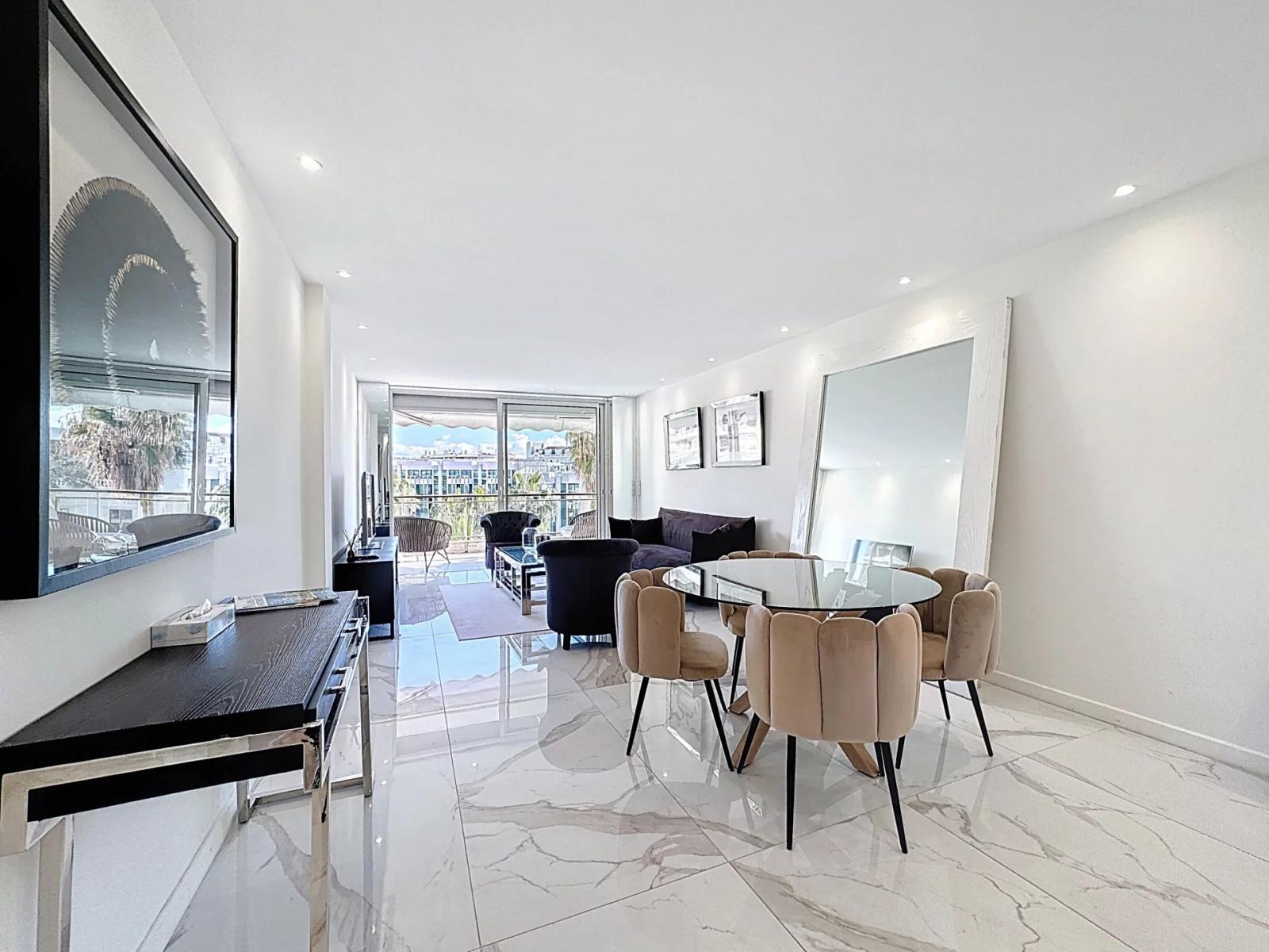 Sur l'emblématique Croisette, donnant sur le Parc de l'hôtel Mondrian, dans une résidence de standing gardiennée, au calme, bénéficiant d'une terrasse vue mer, nous vous présentons un appartement 3 pièces totalement rénové.