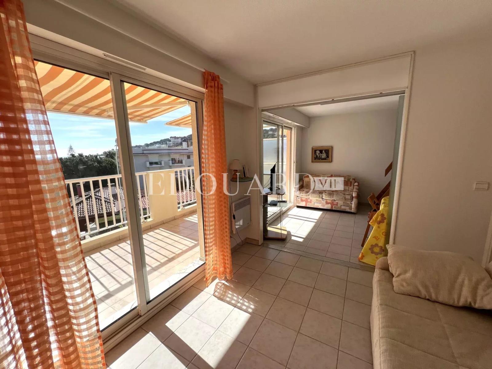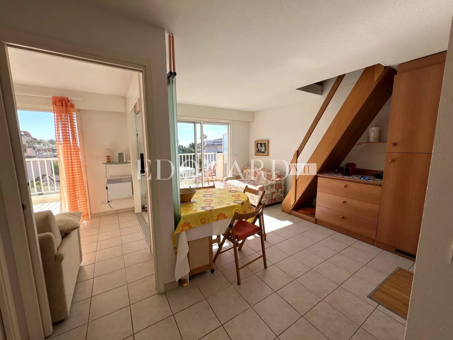 En exclusivité deux pièces en dernier étage avec spacieuse terrasse, cave et parking, à quelques pas des plages