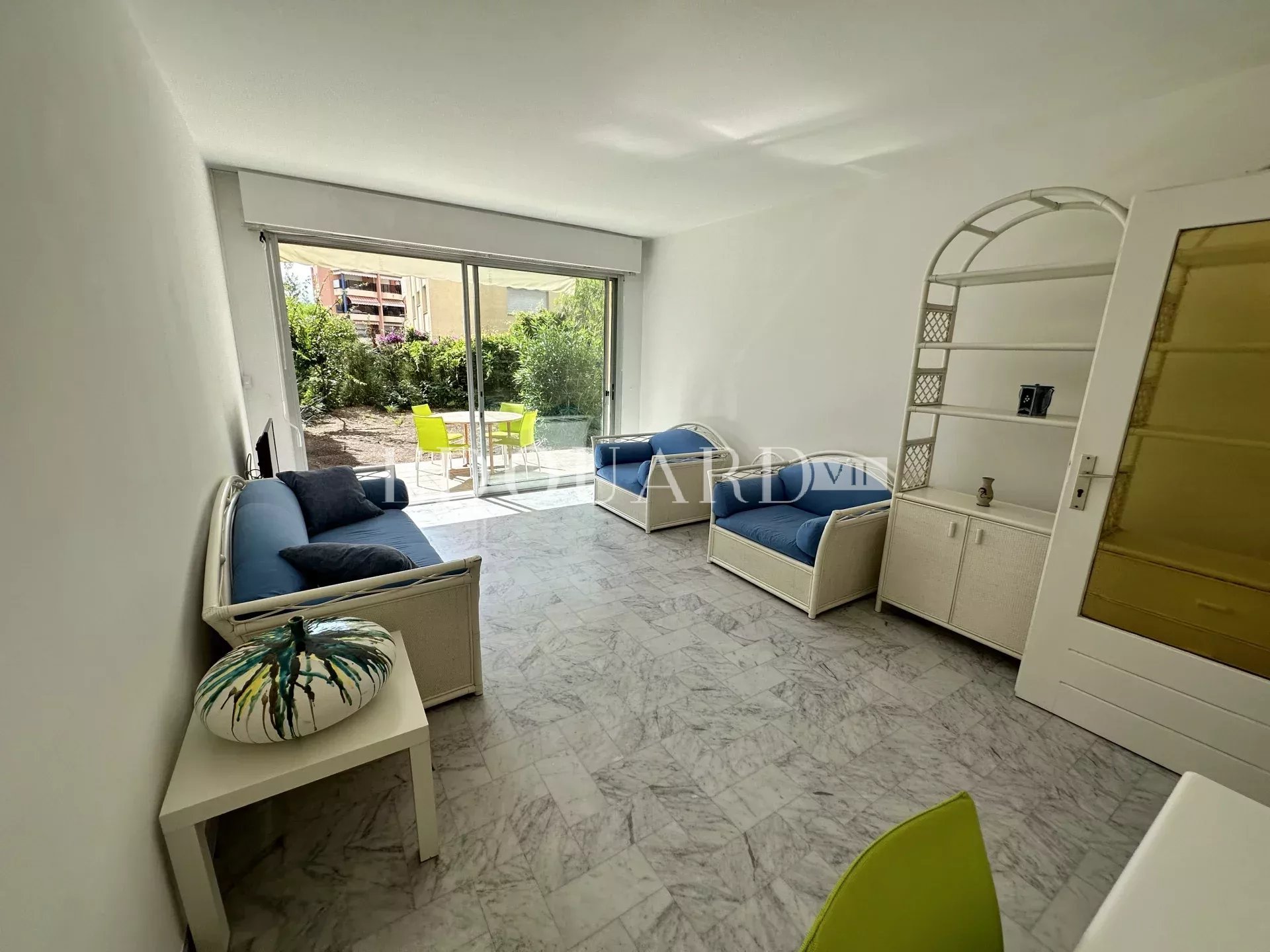 En exclusivité deux pièces traversant avec terrasse couverte, grand jardin, cave et garage