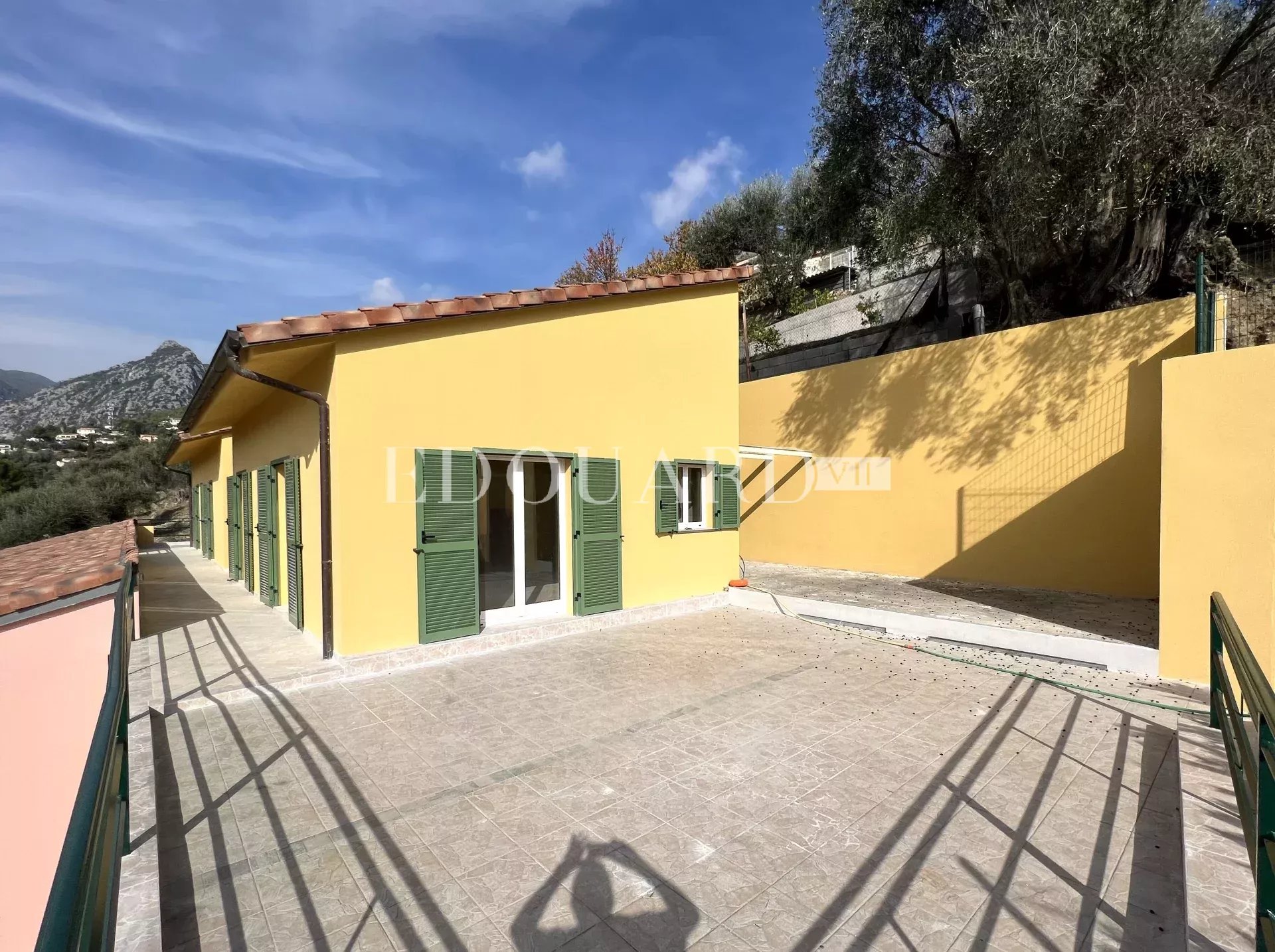 En exclusivité maison à vendre sur la commune de Castellar, dans un quartier résidentiel à quelques minutes en voiture de Menton. Villa de 98 m² en cours de rénovation avec plusieurs possibilités d'aménagement et choix des finitions. Bâtie de plein pied sur 2.000 m² de terrain avec double garage et parking extérieur, se compose d'un grand séjour avec cuisine américaine, de trois chambres avec mezzanine, d'une salle de bains, d'une salle de douche, d'un WC indépendant et d'une terrasse de 100 m² avec belle vue panoramique jusqu'à la mer.