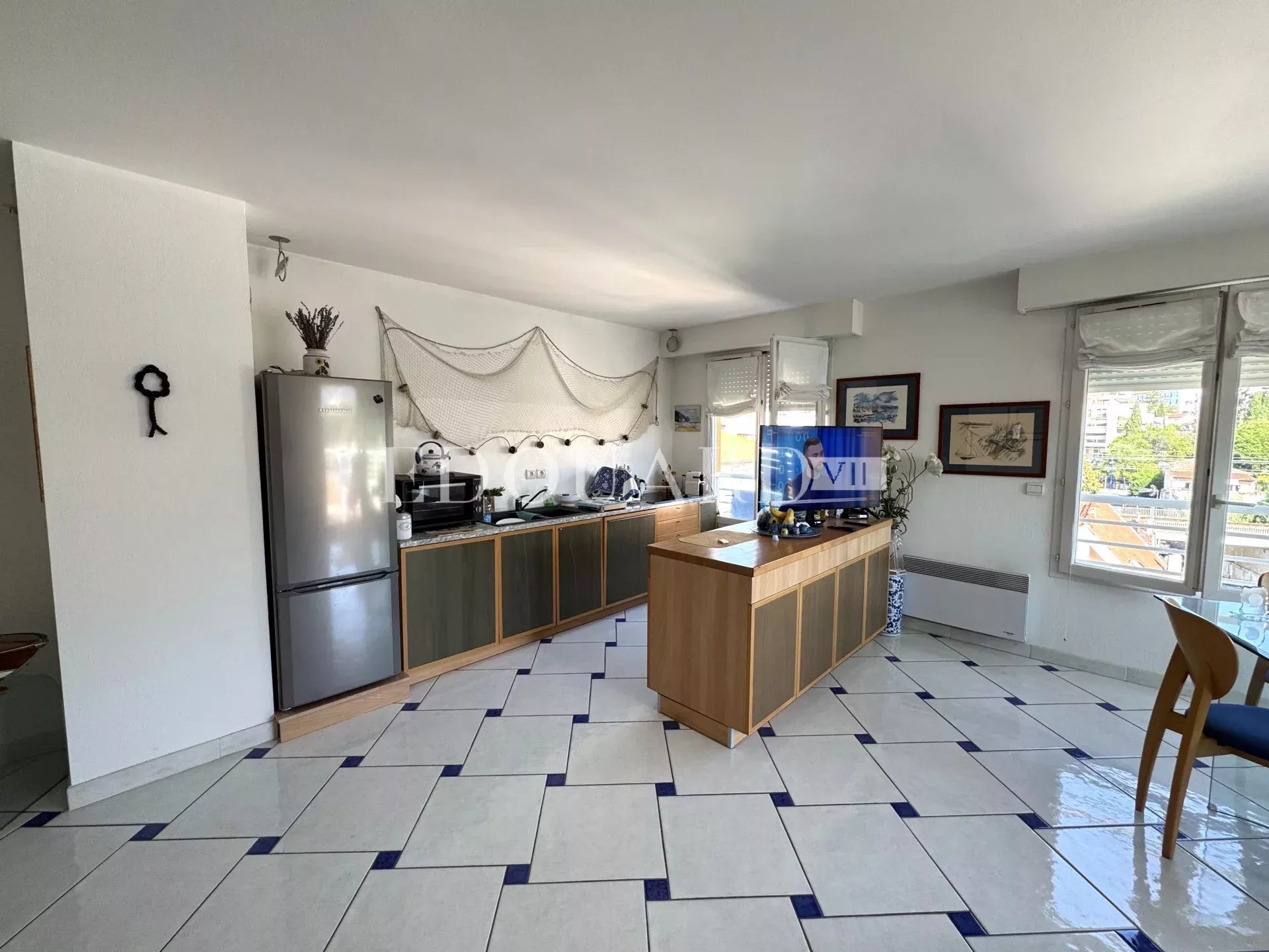 - lumineux séjour avec cuisine américaine équipée