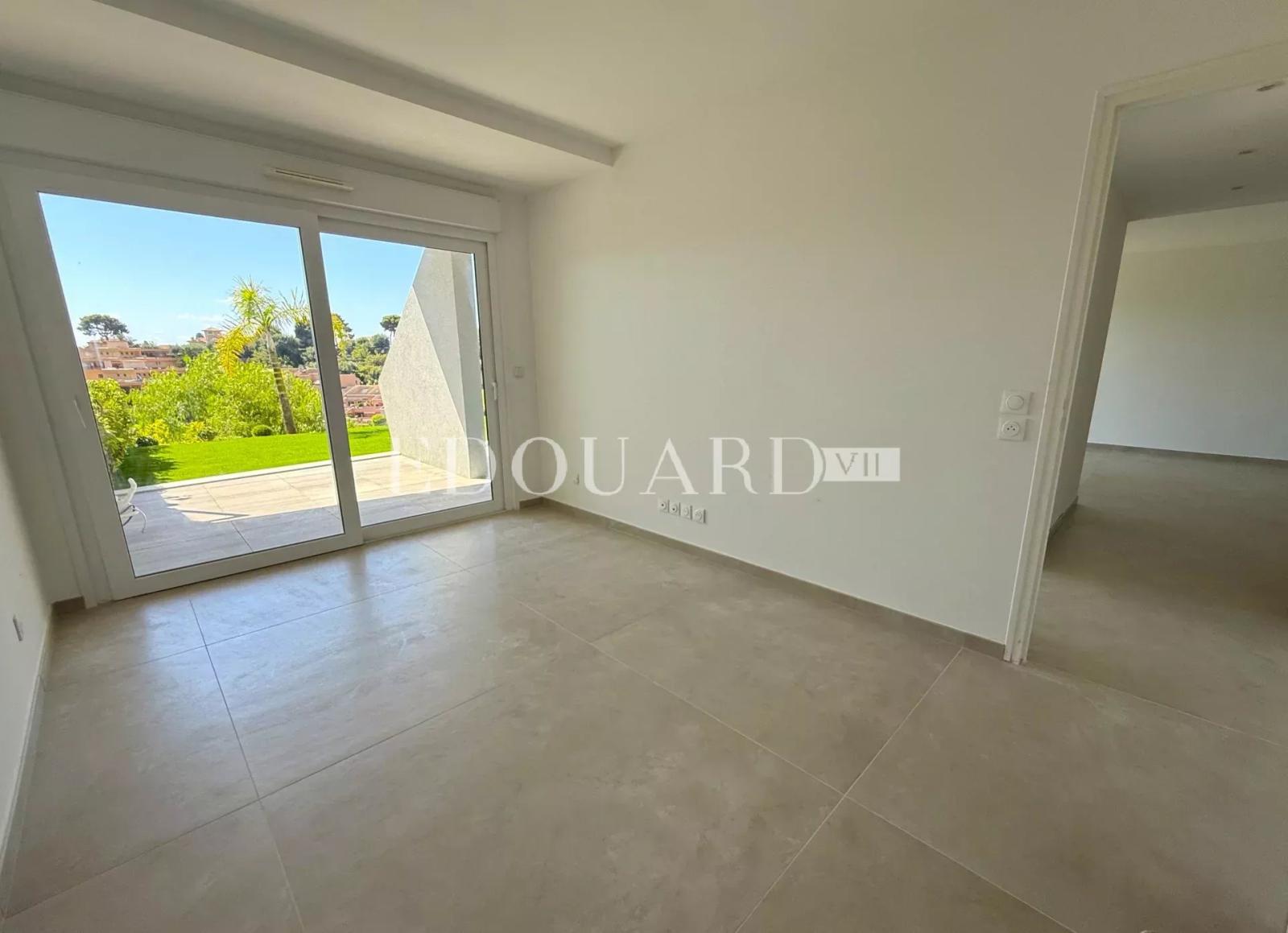Trois pièces rénové avec grande terrasse, vaste jardin, belle vue panoramique jusqu'à la mer et parking