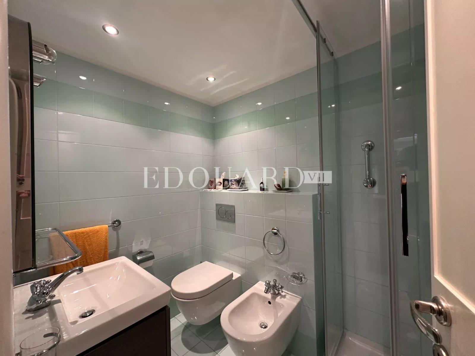 Deux pièces à vendre dans le carré d'or de Menton. Au deuxième étage d'une résidence de luxe avec conciergerie, vidéosurveillance, piscine, sauna et salle de sport, appartement de 52 m² en très bon état avec porte blindée, double vitrage, volets roulants et stores électriques. Composé de spacieuse entrée avec plusieurs placards, lumineux séjour, cuisine indépendante équipée, chambre avec placard, salle de douche avec WC et bidet, grande terrasse exposé Sud-Ouest avec belle vue mer panoramique, cave et parking en sous-sol. Idéalement situé face aux plages, à quelque pas de tous les commerces, du Casino Barrière et du Tennis Club de Menton.