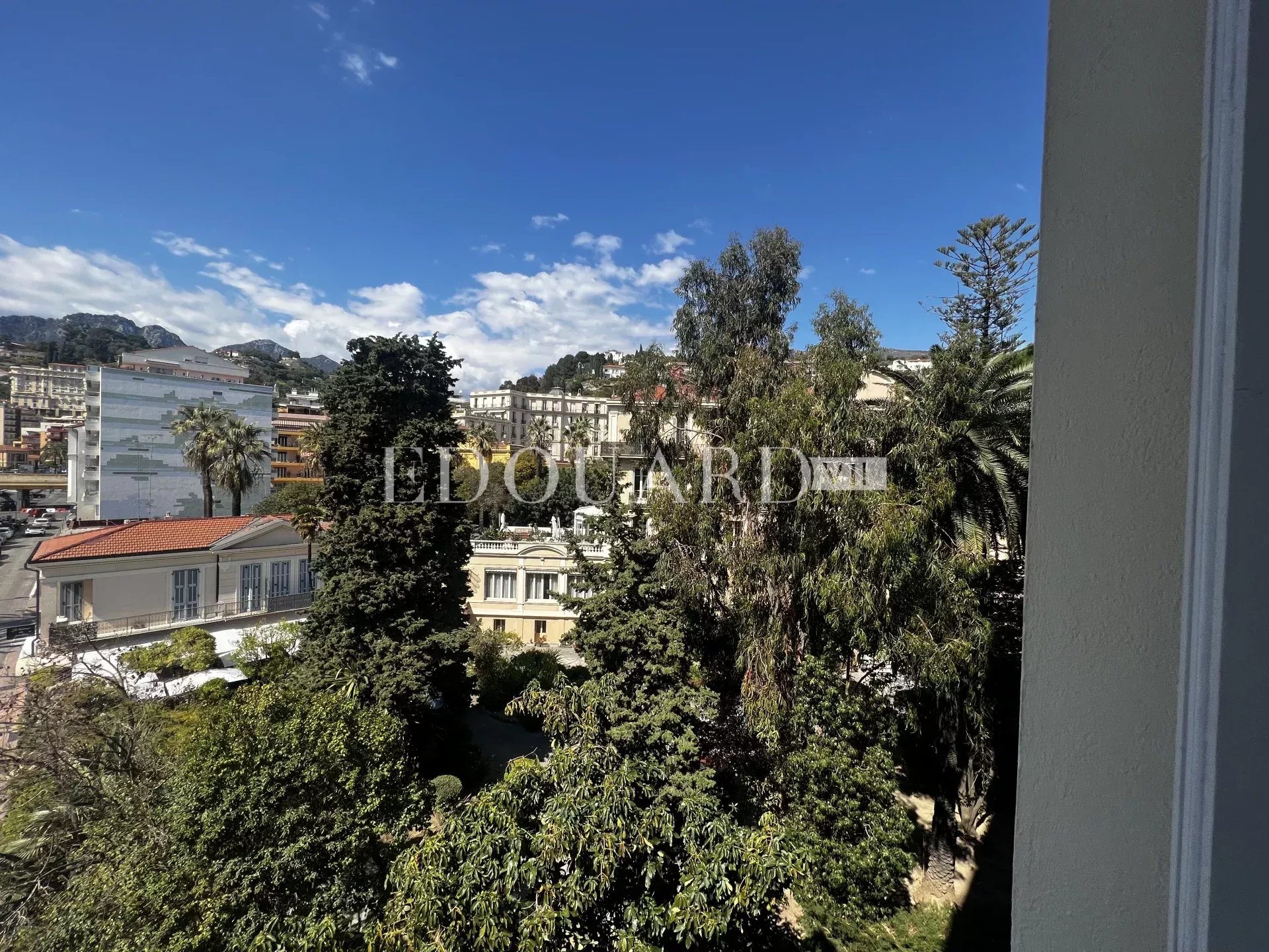 En exclusivité trois pièces à vendre avec belle vue sur la ville jusqu’à la mer, en plein centre de Menton