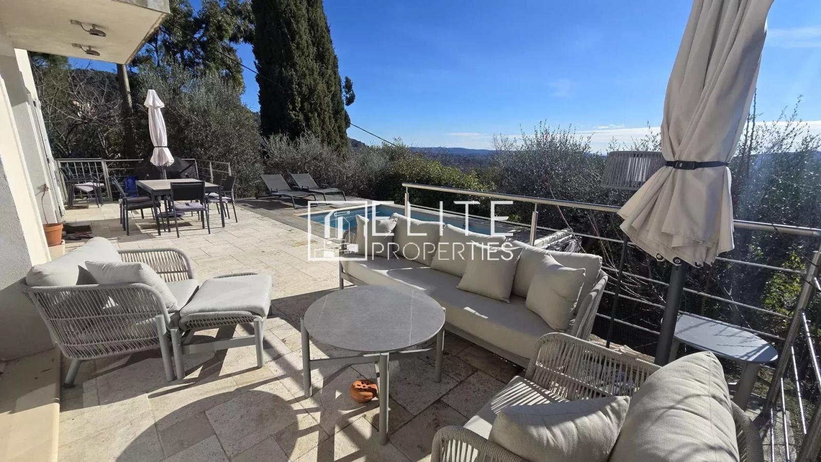 CABRIS (limite Peymeinade) – Découvrez cette superbe maison de 6 pièces d’une superficie de 146 m², sans vis-à-vis, édifiée sur un terrain de 867 m². Elle offre une magnifique vue panoramique jusqu’à la mer et dispose d’une piscine de 10m².