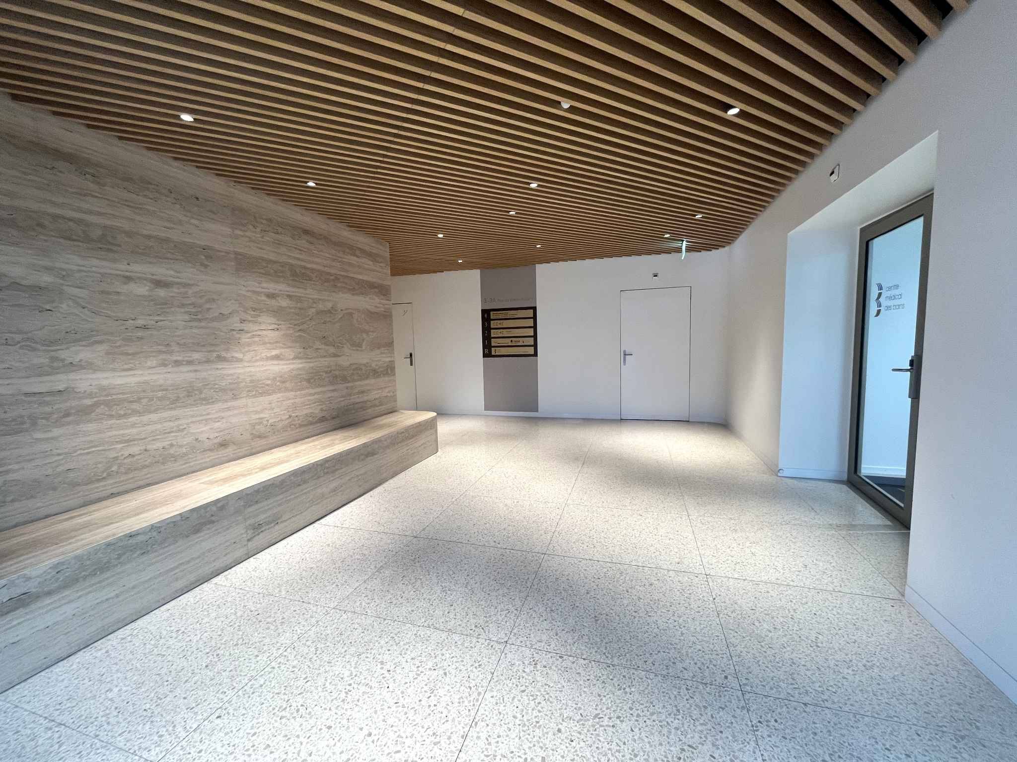 L’immeuble dispose d’une entrée récemment rénovée, élégante et sécurisée, ainsi que de deux ascenseurs. En sous-sol, vous bénéficiez avec supplément de vestiaires avec douches, de places pour vélos.