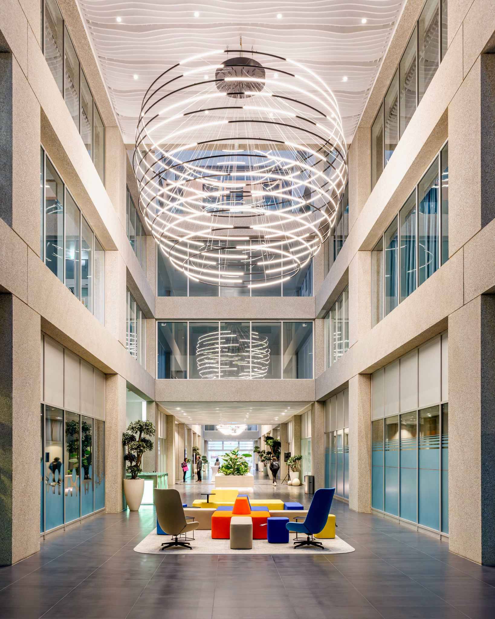 - 7 ascenseurs par étage (charge maximale 630 kg)