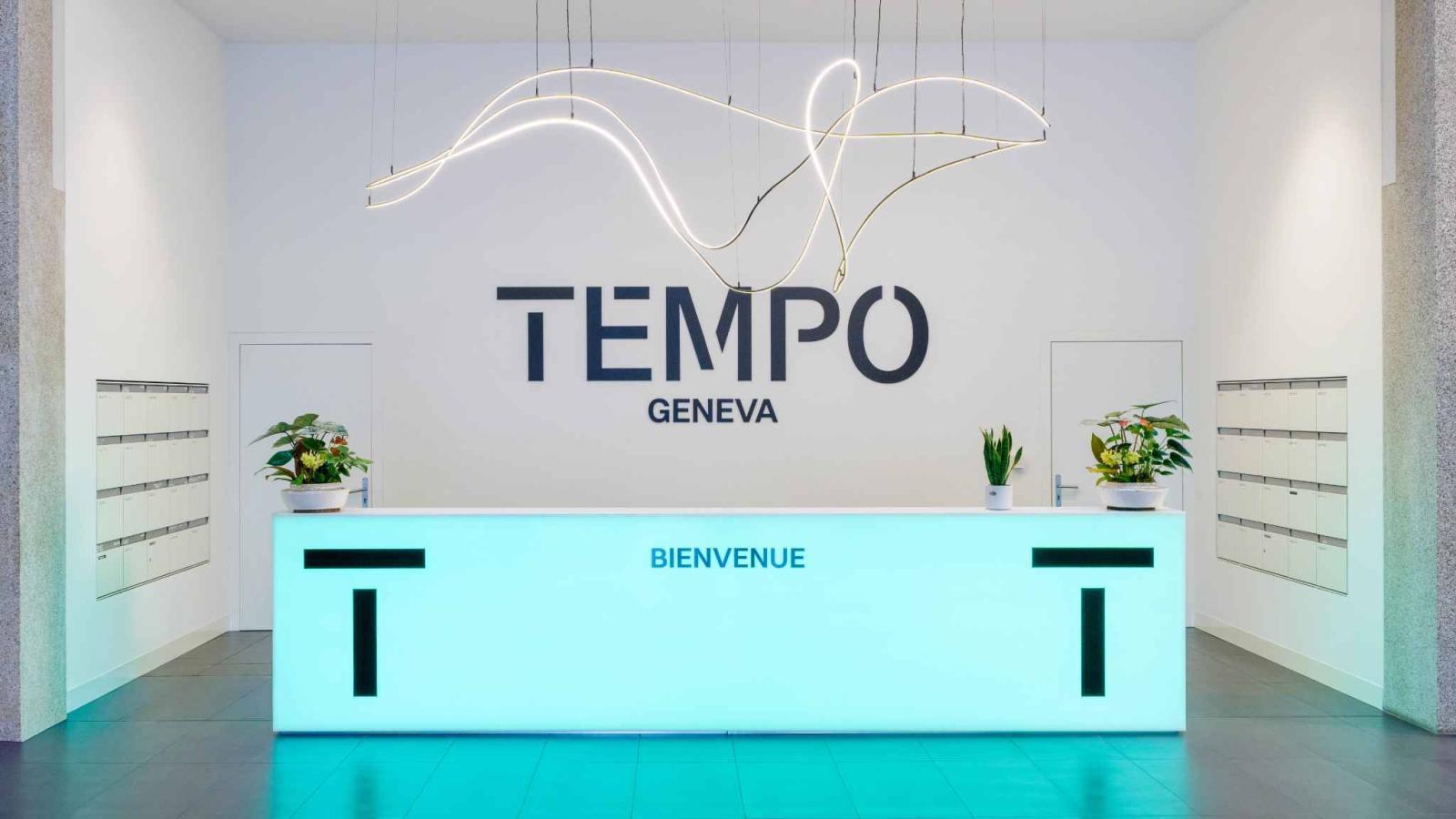 TEMPO se distingue par son concept d’espaces de travail « high-tech », alliant fonctionnalité, modernité et qualité de vie. Ce bâtiment contemporain de 23’500 m², certifié BREEAM et MINERGIE, occupe une position stratégique au cœur de la zone industrielle de Plan-les-Ouates.