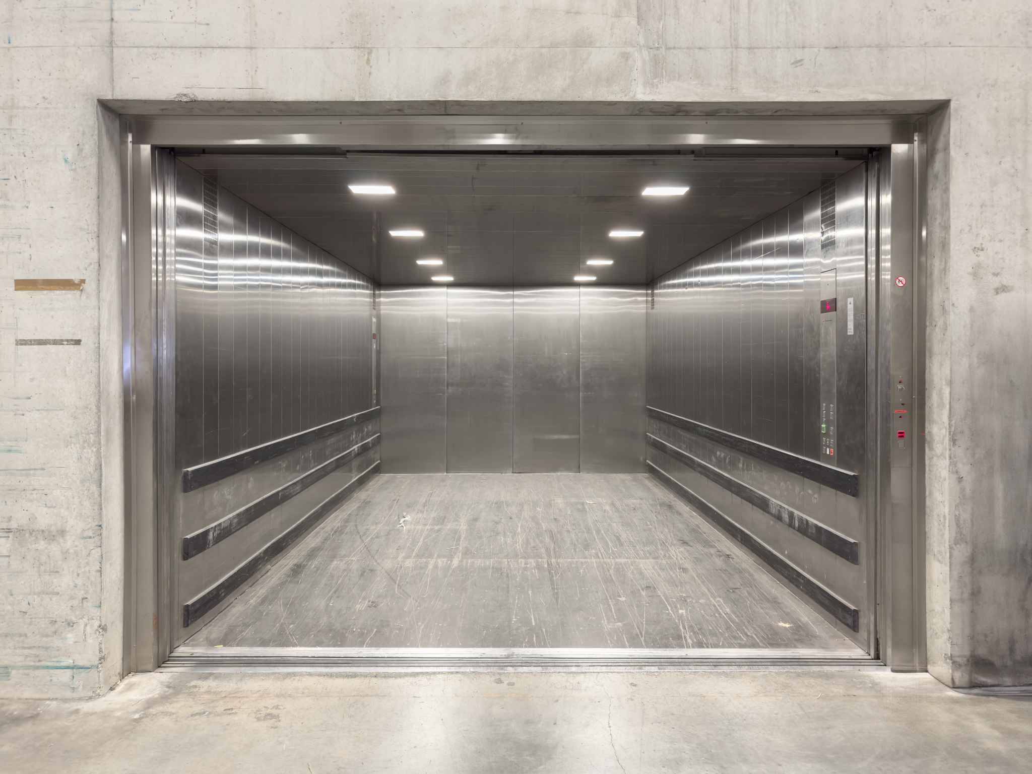 - Monte-charge de grande taille : 6000kg - environ 16 palettes CFF (3m de haut)
