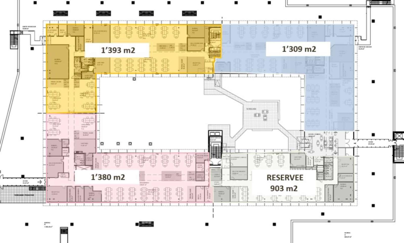 - Plateau de 5000m2 de surface administrative, divisible dès 1'310m2 selon vos besoins et projets