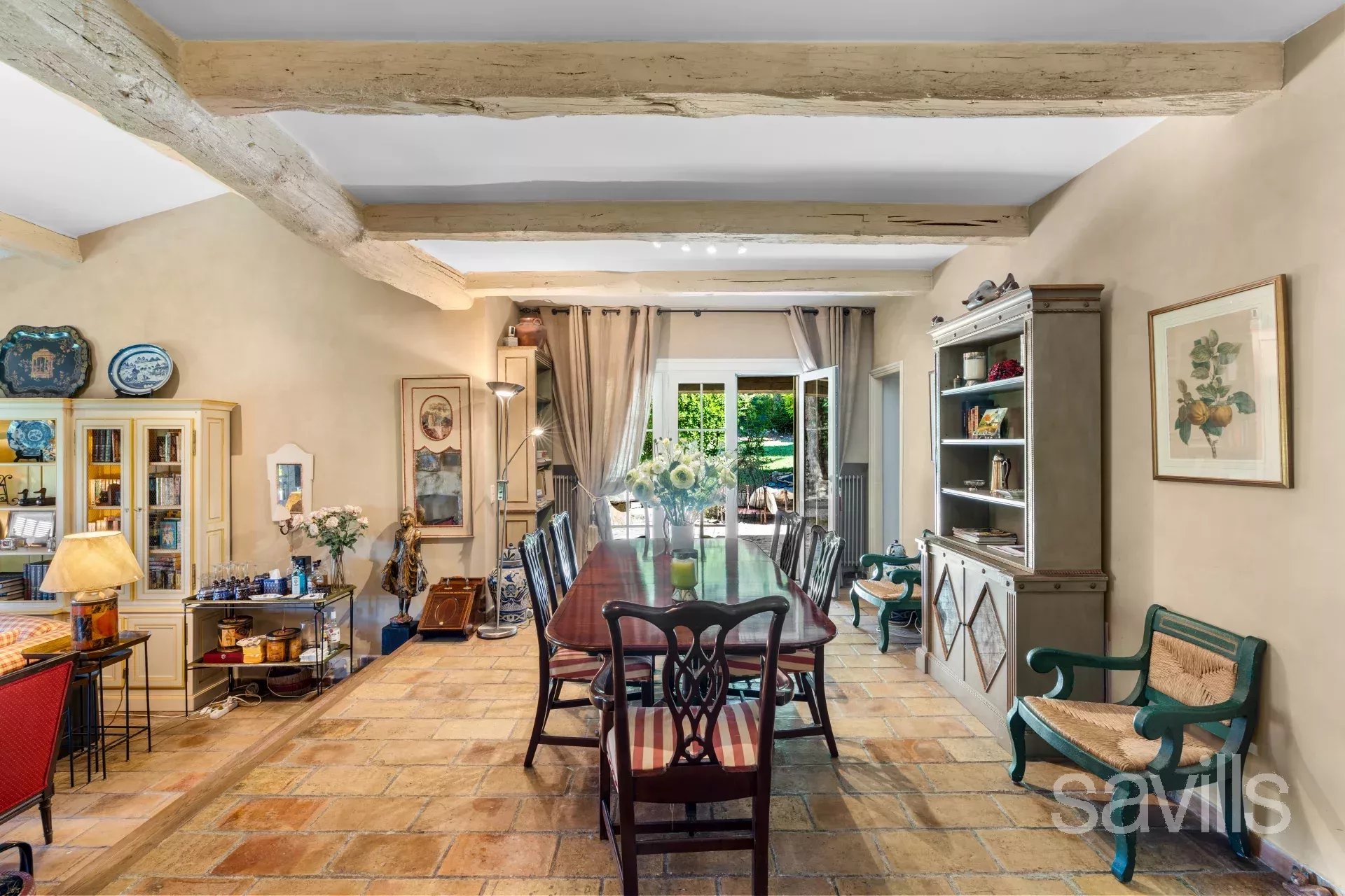 Dès l’entrée, un vaste hall avec vestiaire mène à un séjour lumineux doté d’une cheminée, de poutres apparentes et d’une belle hauteur sous plafond. La salle à manger s’ouvre sur une cuisine indépendante, moderne et fonctionnelle, avec buanderie attenante.