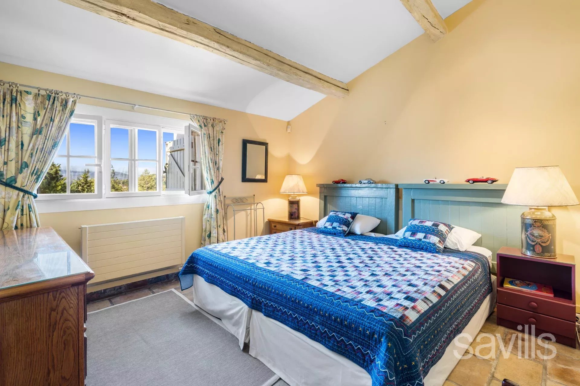 Le rez-de-chaussée comprend deux chambres, dont une belle suite parentale de 27 m² avec salle de bains et toilettes, ainsi qu’une seconde chambre avec sa salle de bains privative. Un grand bureau, baigné de lumière et ouvert sur le jardin, constitue un espace idéal pour le télétravail. À l’étage, deux chambres supplémentaires profitent d’une vue panoramique sur le massif de l’Esterel et partagent une salle de douche avec WC.