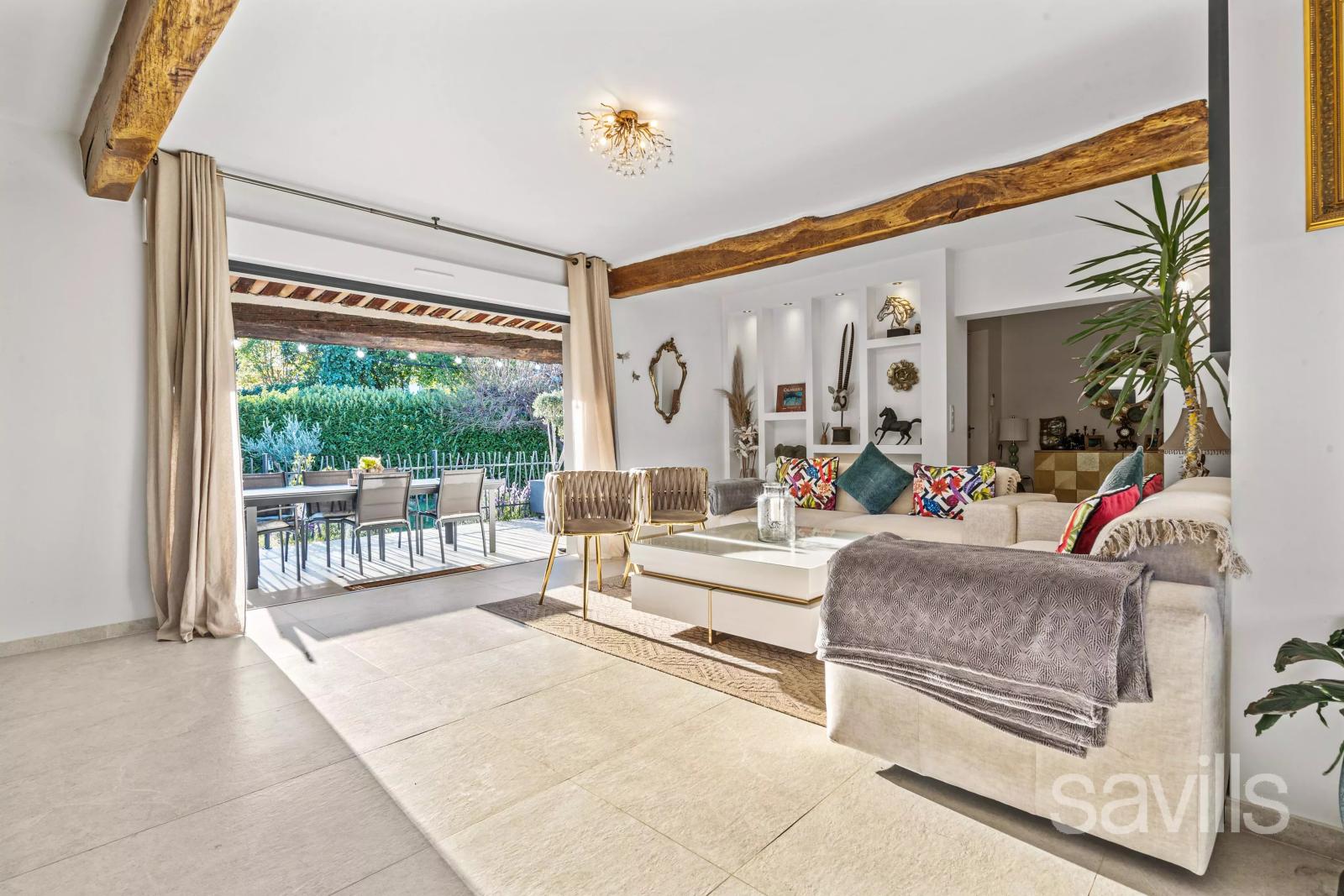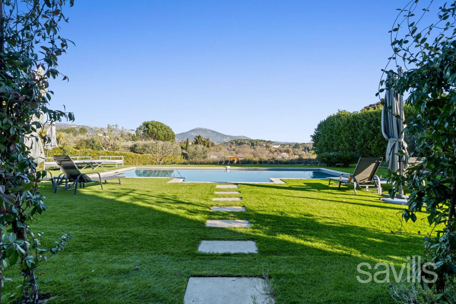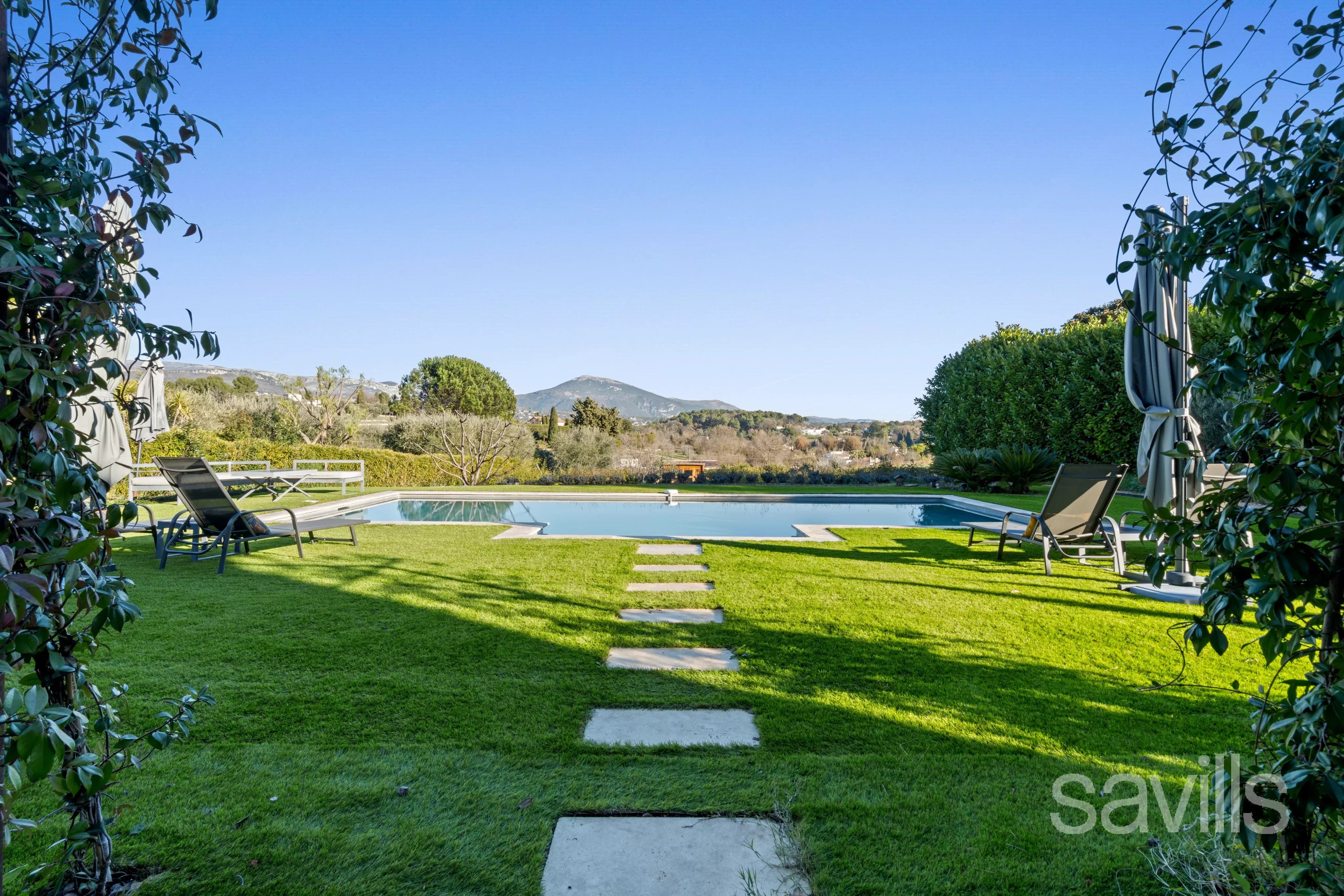 Le jardin, entièrement plat et clos, s’étend sur environ 2 360 m². Pensé pour profiter pleinement de l’art de vivre provençal, il offre de vastes terrasses ensoleillées, idéales pour les moments de convivialité, ainsi qu’une belle piscine bénéficiant d’une vue dégagée sur les collines verdoyantes de l’arrière-pays.