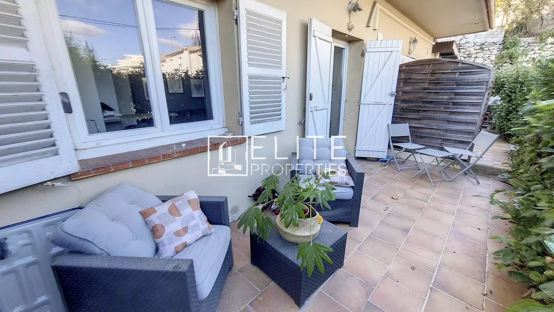 Grasse Sud (au dessus des 4 chemins) : Studio rénové en 2023 d'environ 20m² situé au rez-de-chaussée (sur 2) d'une petite copropriété sécurisée. Vendu meublé.