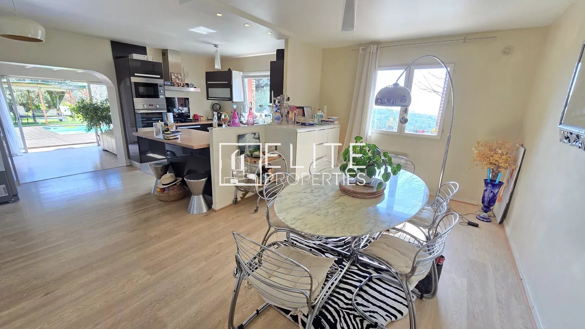 Édifiée sur un terrain de 850 m², elle dispose d’une piscine au sel de 10 m², d’un pool house avec douche et WC, pouvant être aménagée en studio indépendant.