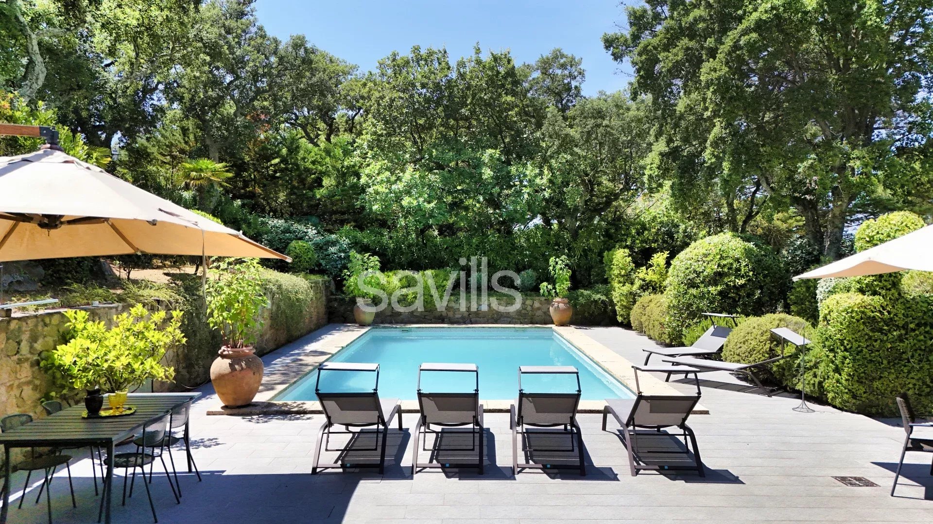 Le jardin est entièrement clos et très bien paysager. Un espace piscine convivial, à l'abris de tous les regards, avec un espace véranda offrant une salle à manger d'été ou jardin d'hivers, idéal pour recevoir.