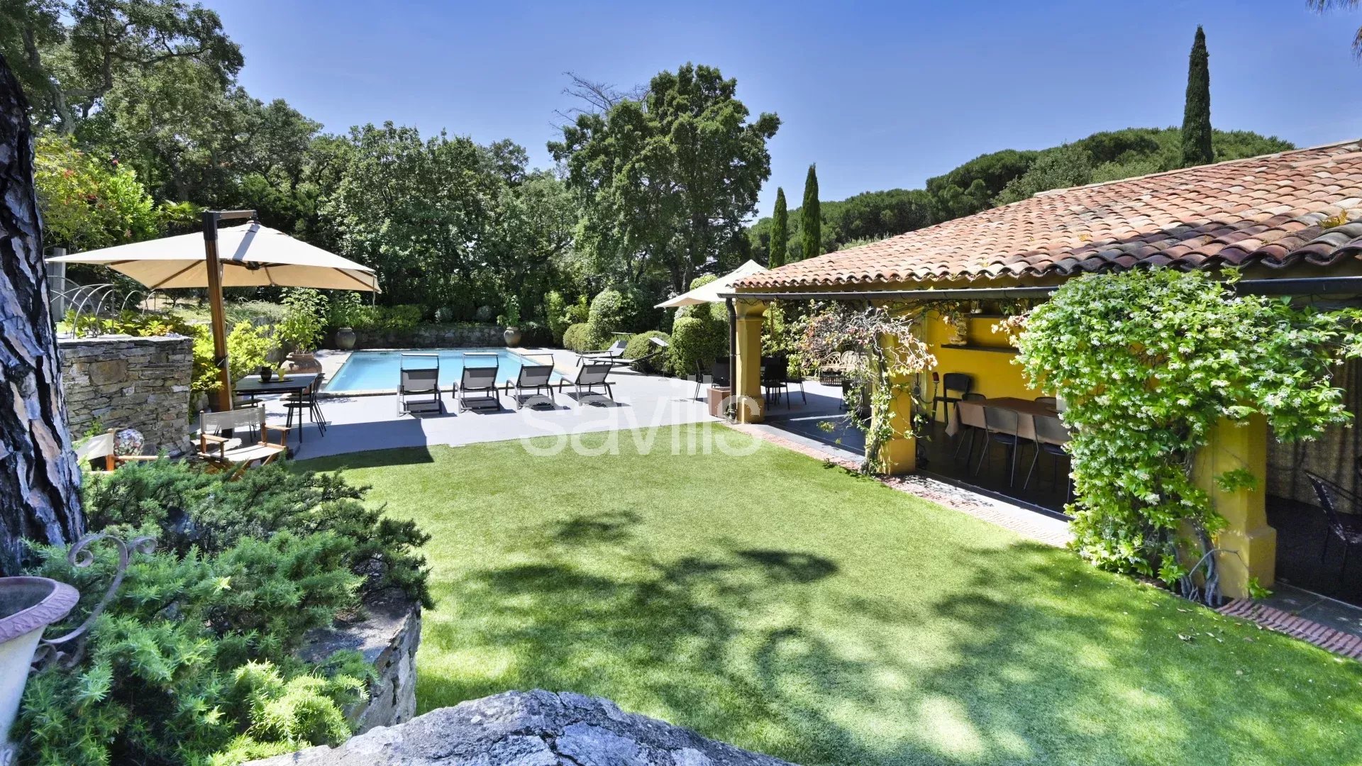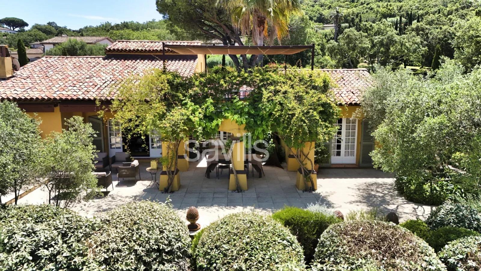 Propriété de charme, idéalement située dans le centre de Saint-Tropez, dans un domaine privé et fermé, au calme absolu, cette villa d'une surface donnée d'environ 240 m², saura vous séduire de part sa proximité au village à pied, son jardin paysager et ses volumes.