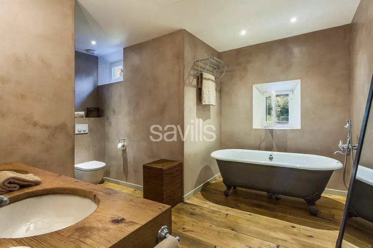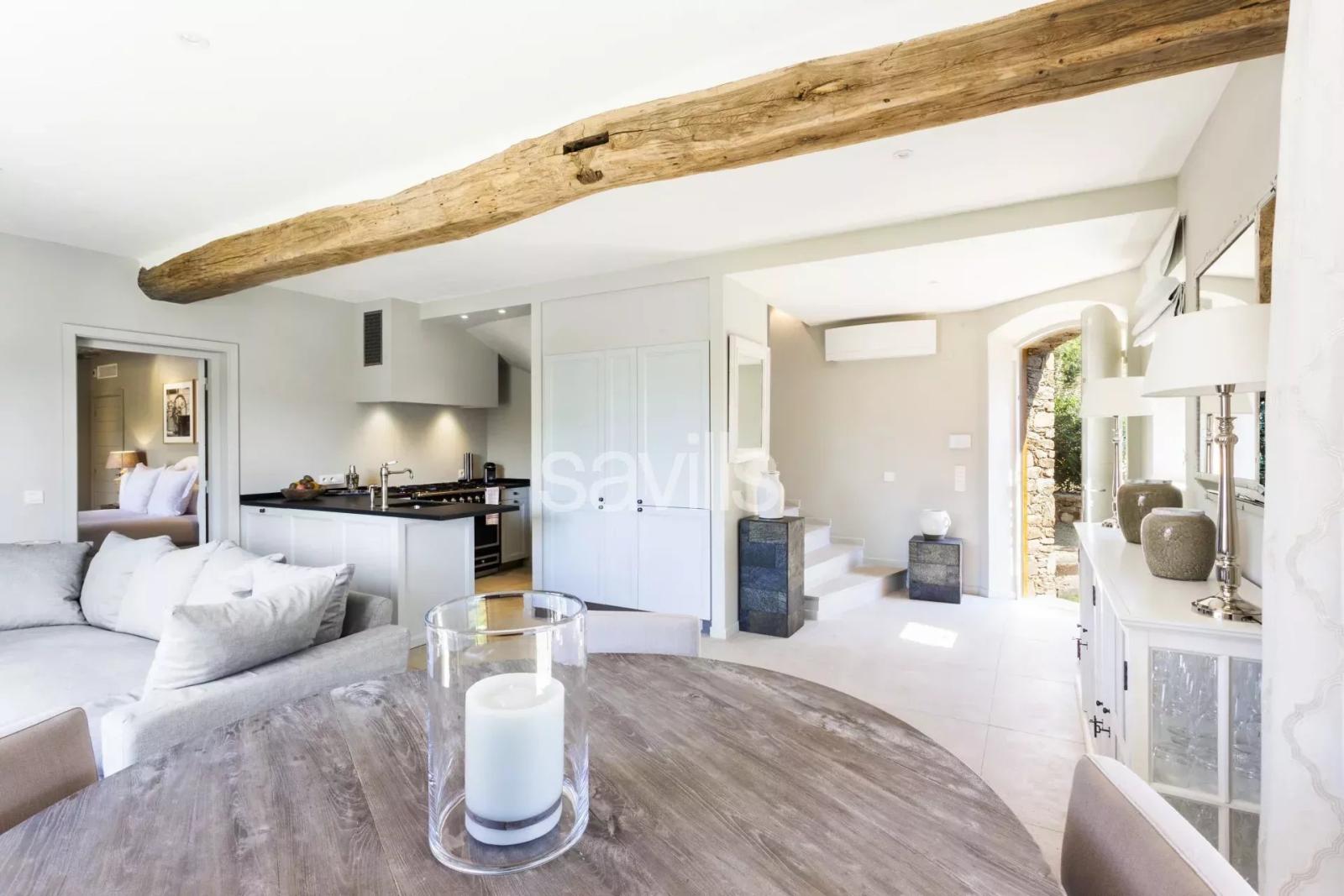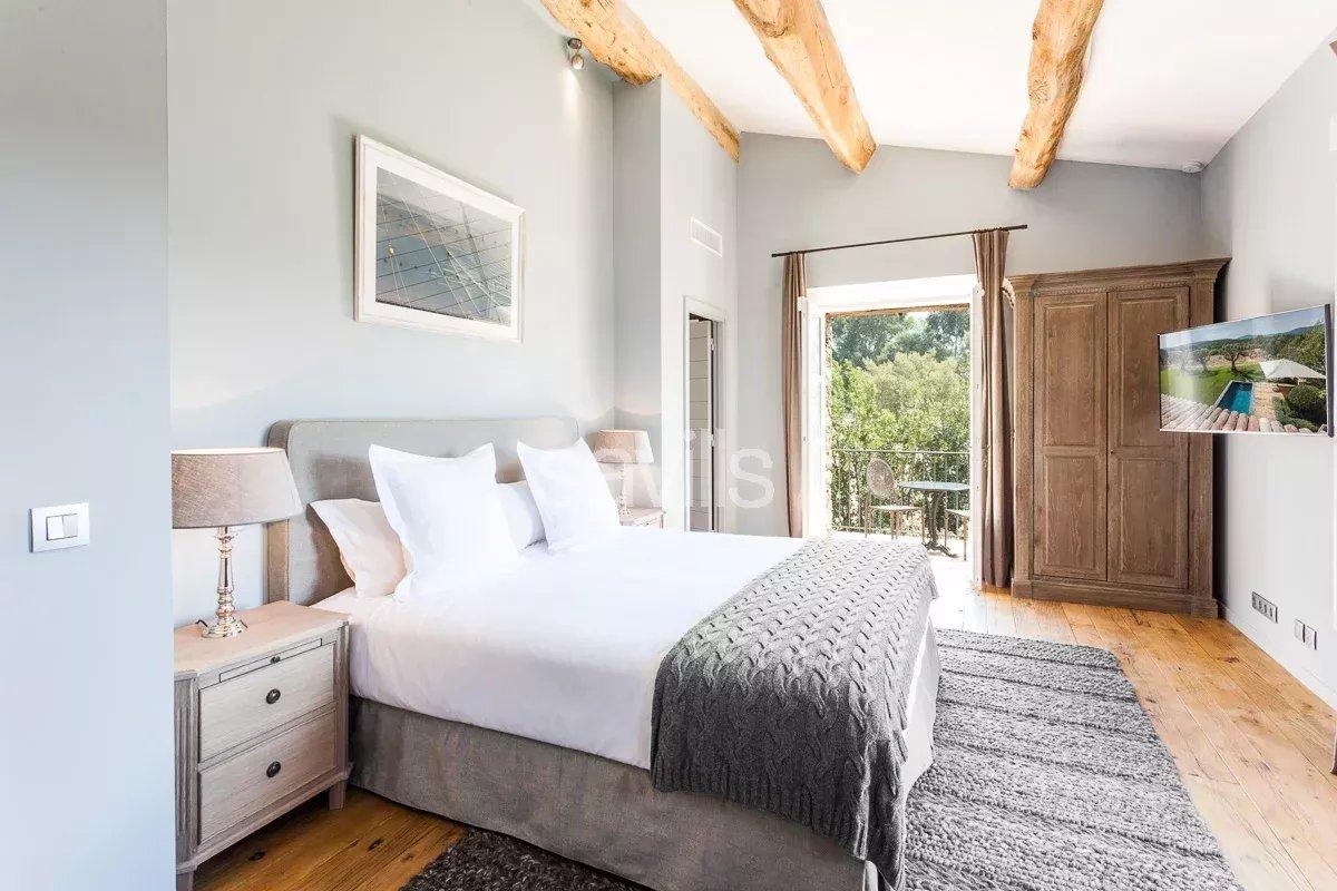 À l’extérieur, la magie opère dans un jardin paysager de 4 000 m² : oliviers centenaires, champ de vignes, piscine invitant à la détente, terrasse avec salle à manger ombragée par les glycines... Un décor idyllique pour savourer la douceur de vivre du sud de la France.