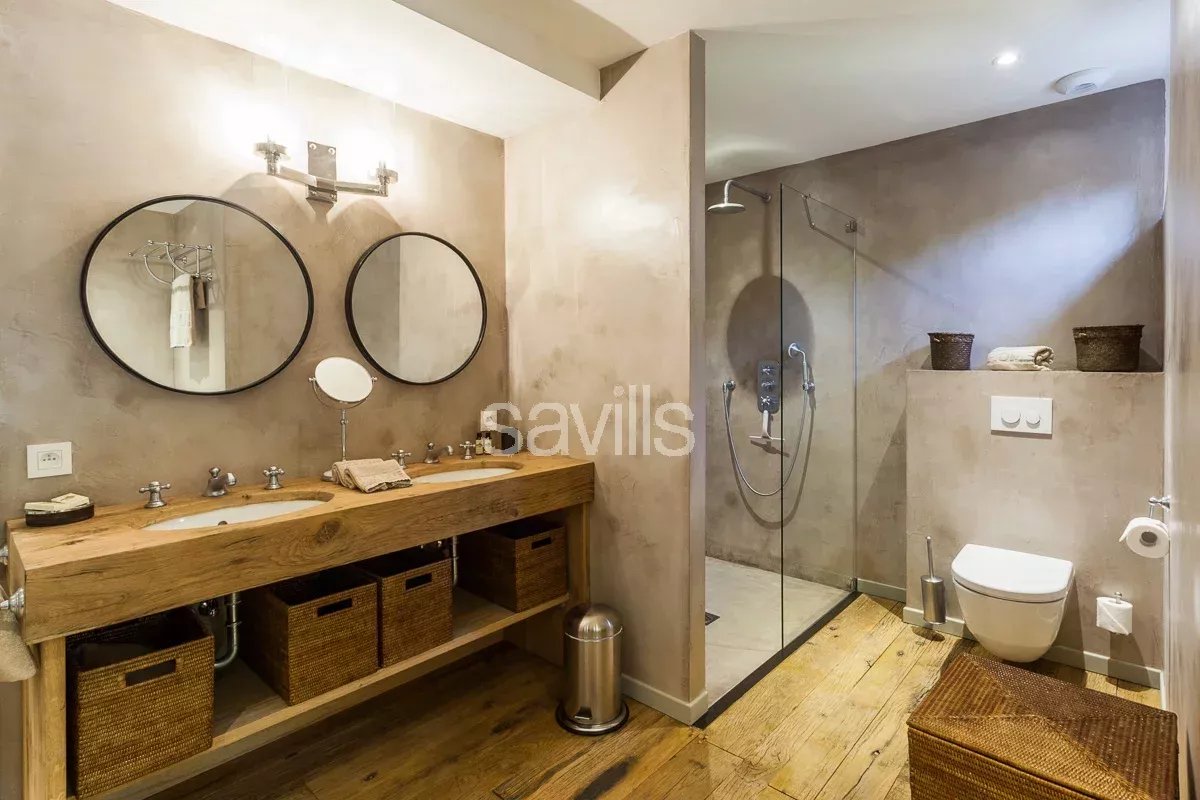 À l’étage, deux chambres en suite, dont l’une avec balcon privatif, dévoilent de belles hauteurs sous plafond. Un deuxième accès par l’extérieur assure à ce niveau une parfaite tranquillité.