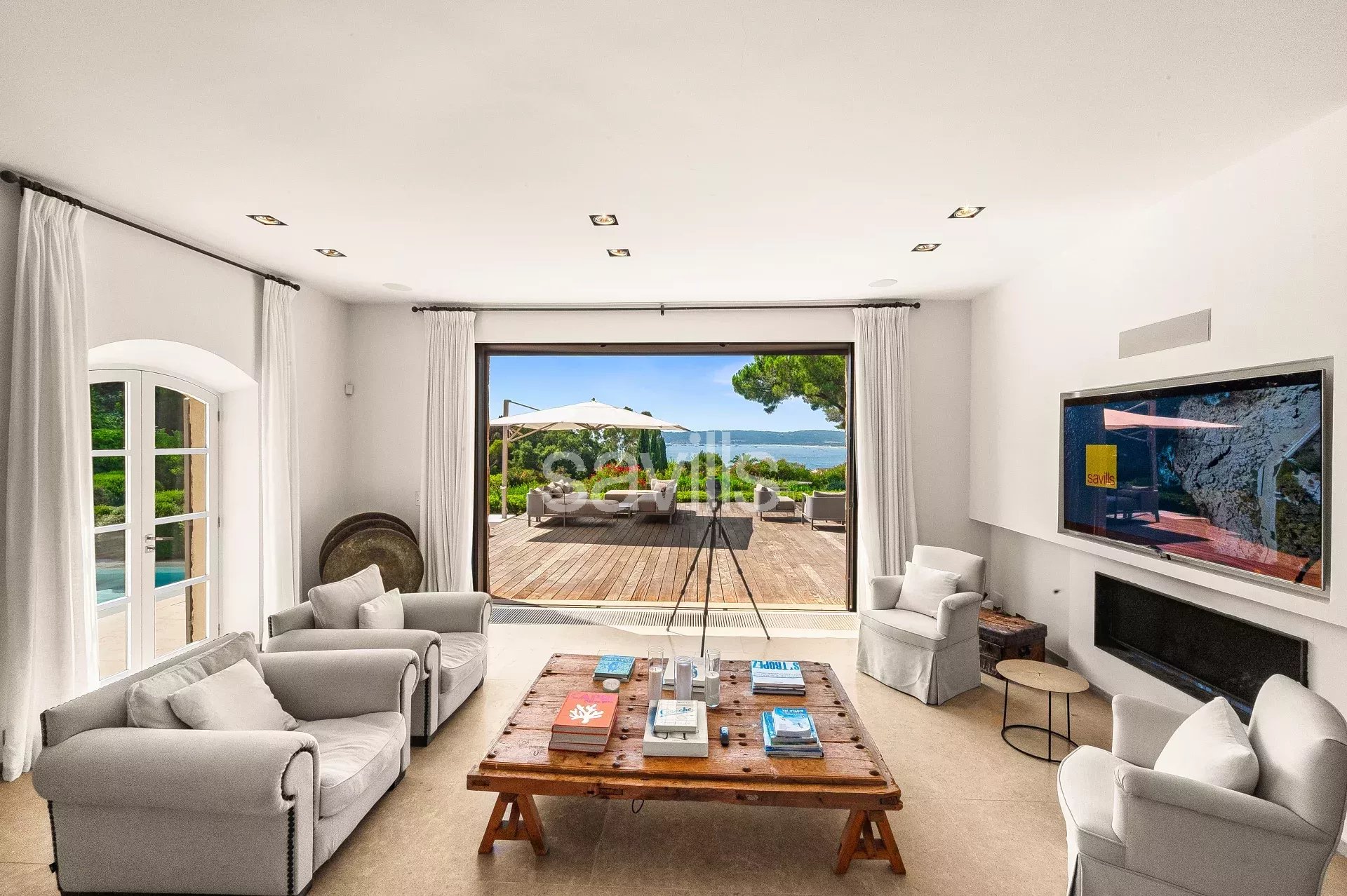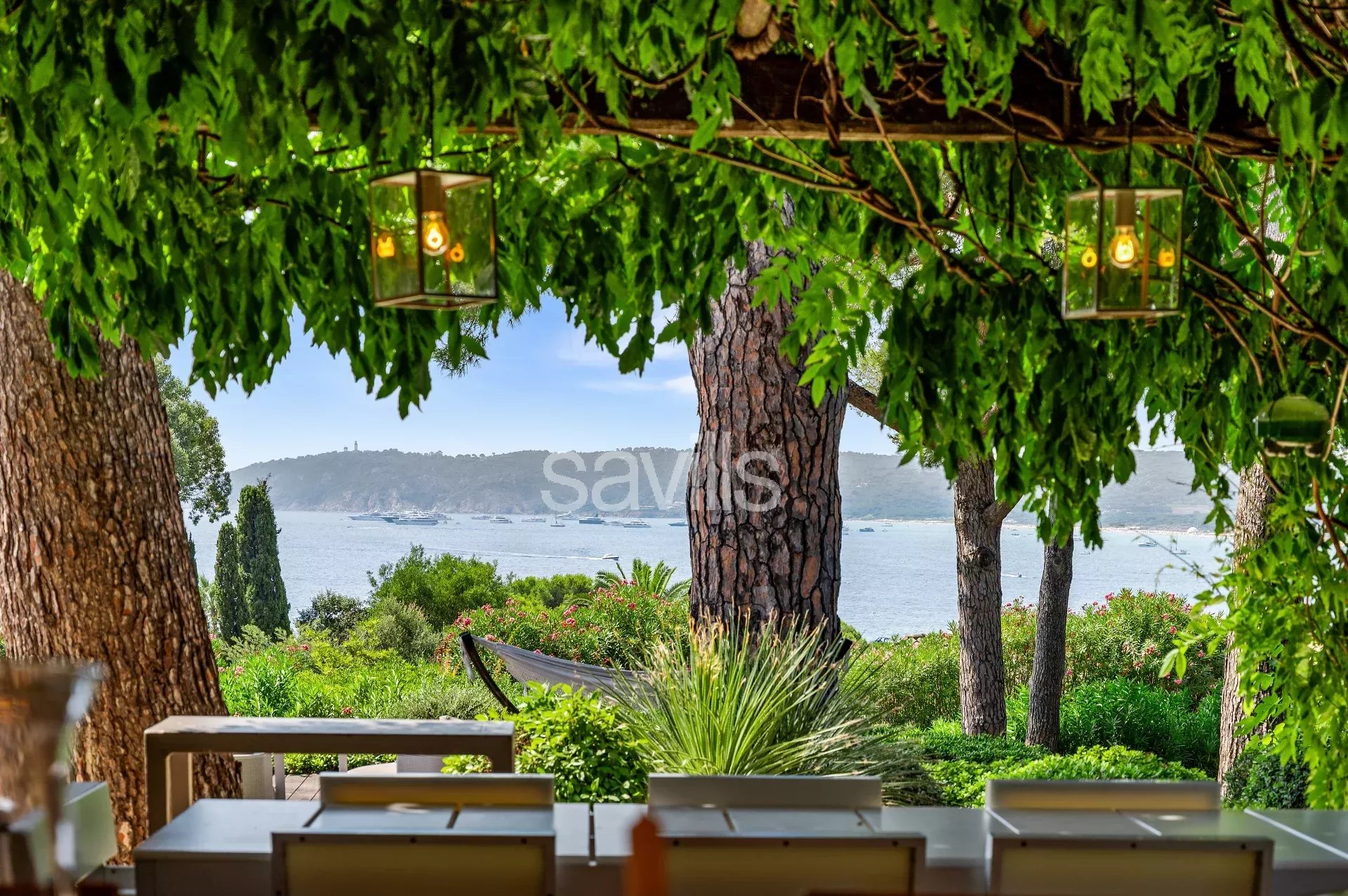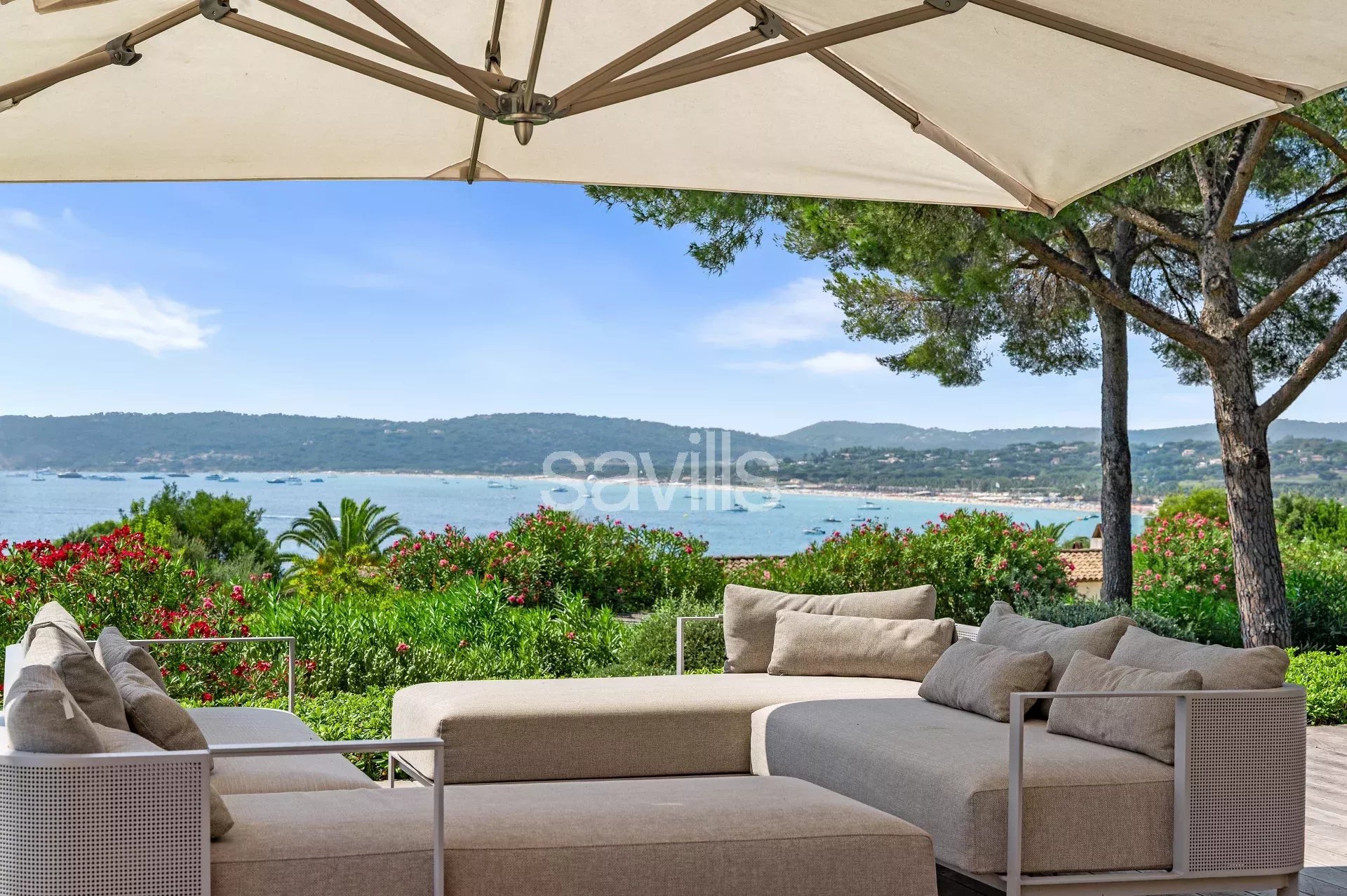 Située au sein du prestigieux domaine sécurisé de La Capilla, cette villa entièrement rénovée domine la baie de Pampelonne et se distingue pour son panorama exceptionnel sur la mer. Profitant d'un environnement calme et verdoyant, elle offre 350 m² habitables au sein d’un terrain arboré de 2 000 m² avec piscine.