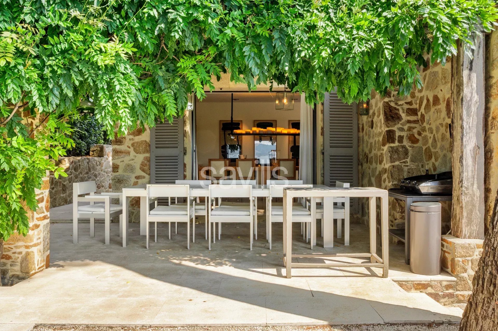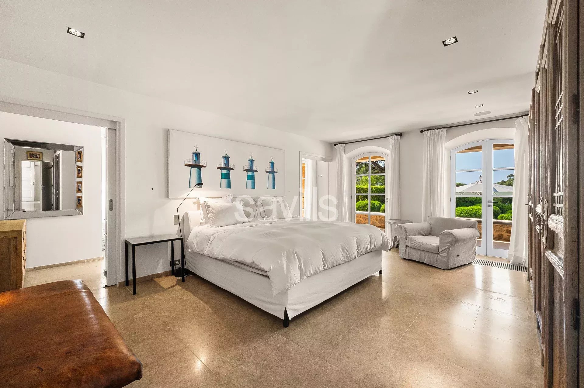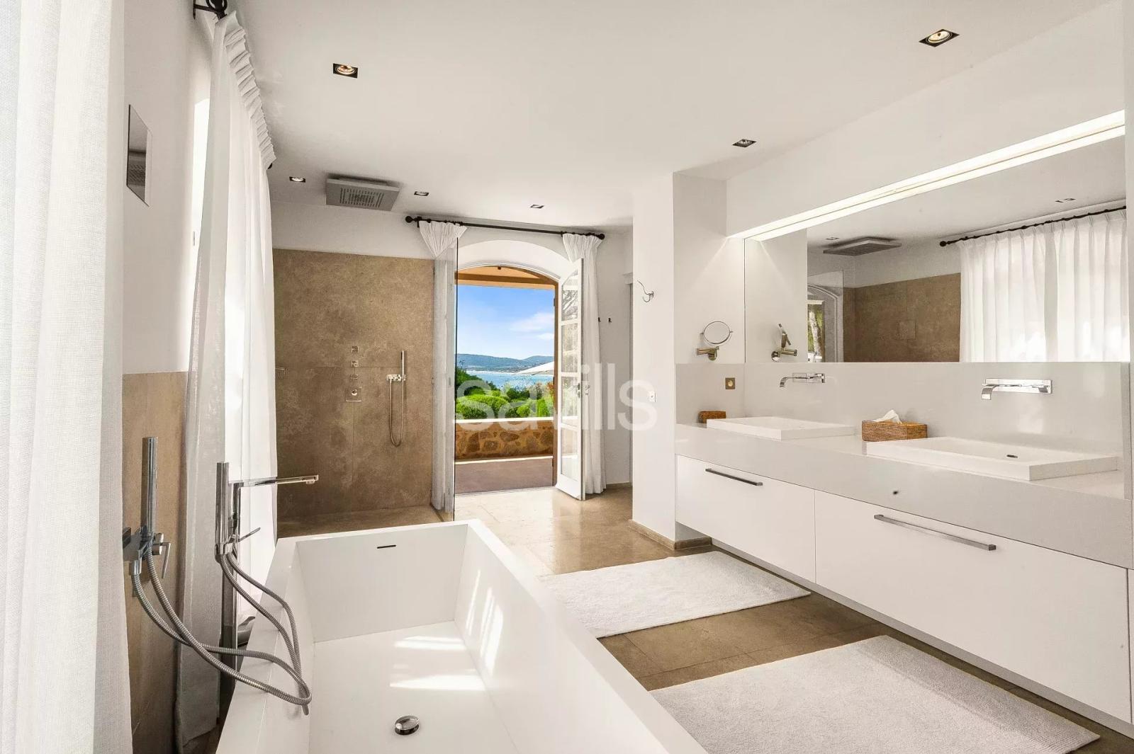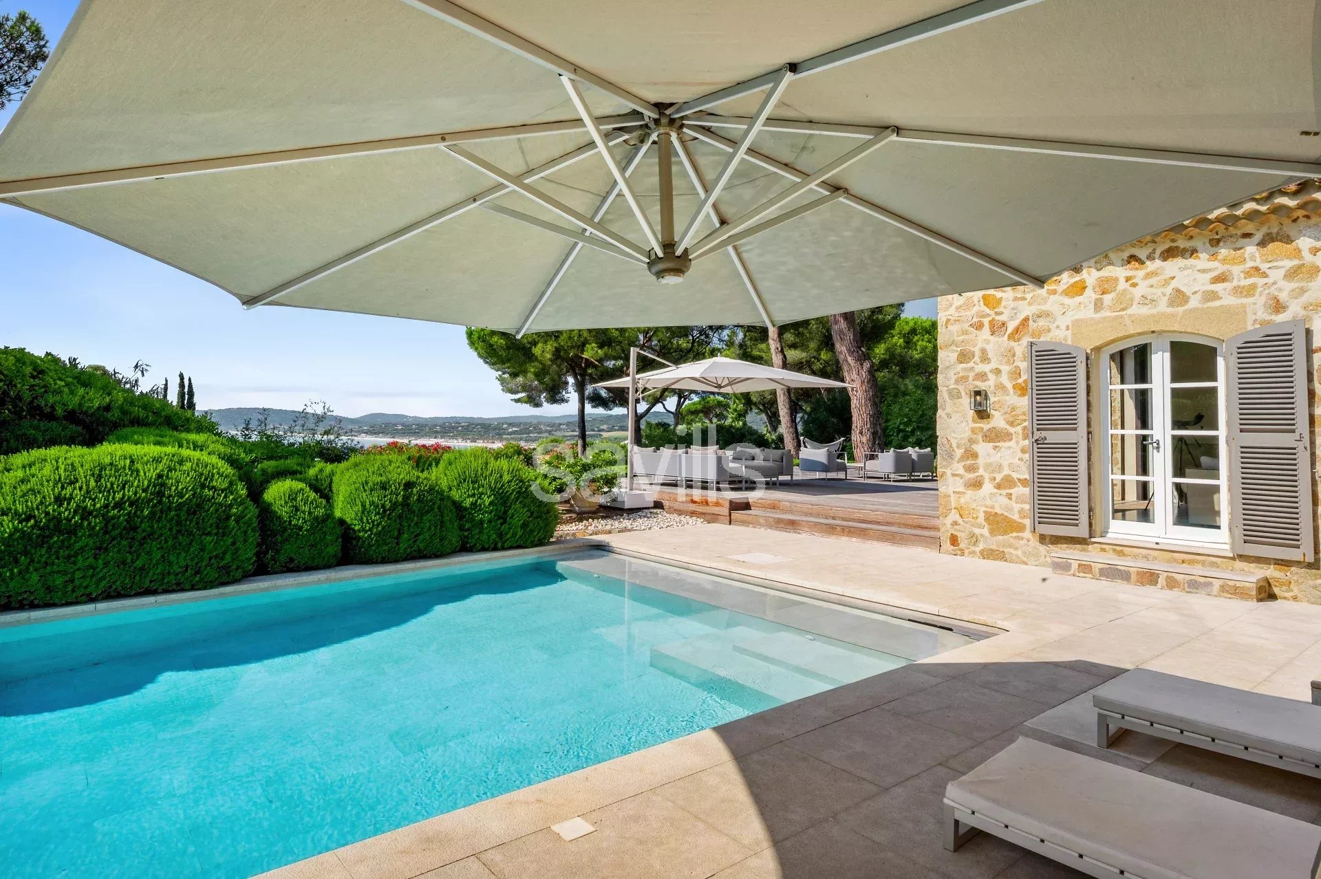 Située au sein du prestigieux domaine sécurisé de La Capilla, cette villa entièrement rénovée domine la baie de Pampelonne et se distingue pour son panorama exceptionnel sur la mer. Profitant d'un environnement calme et verdoyant, elle offre 350 m² habitables au sein d’un terrain arboré de 2 000 m² avec piscine.