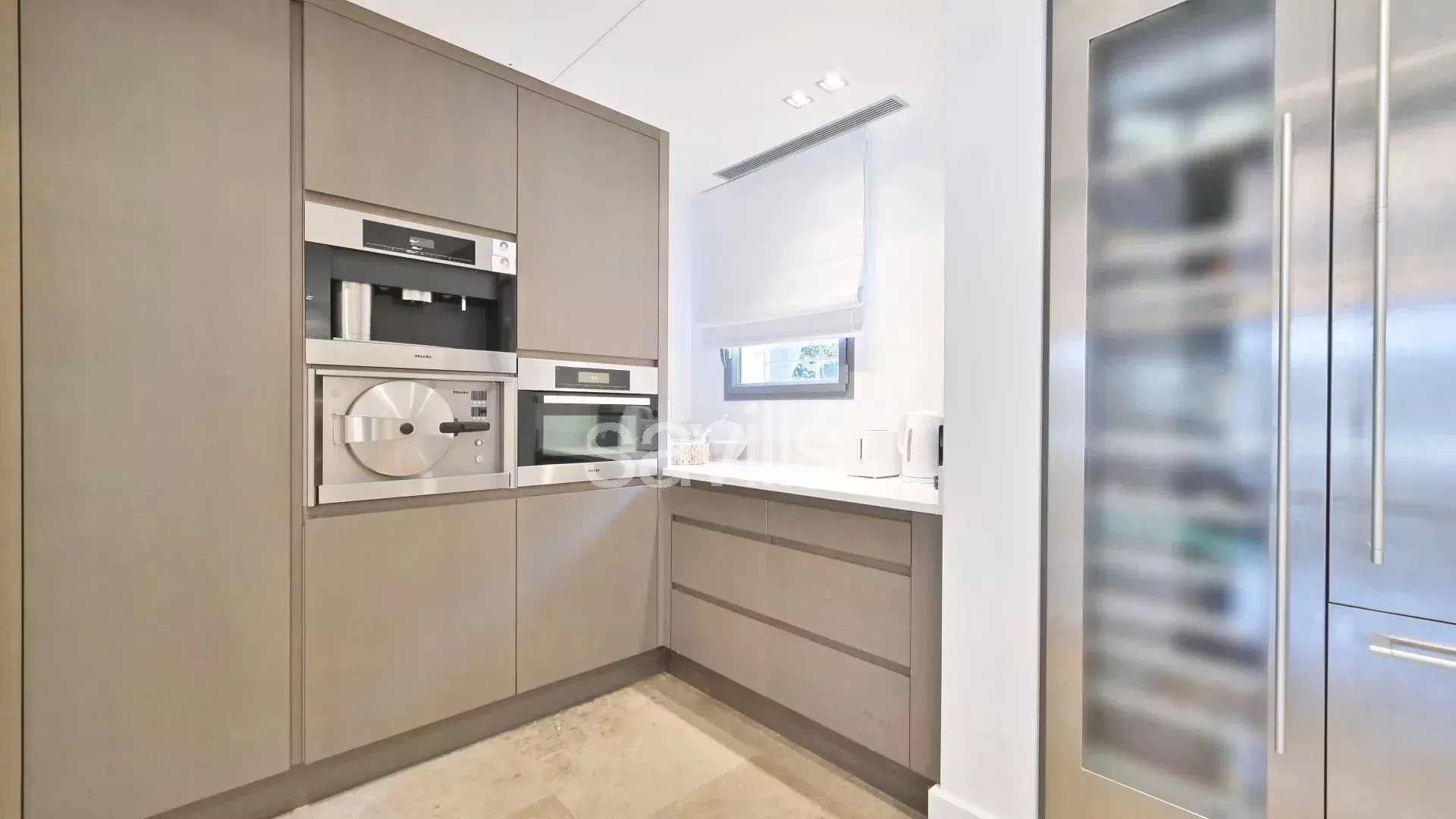 Cette villa s'étend sur un terrain entièrement clos et paysager, assurant une intimité totale. À l'extérieur, profitez d'un jardin paysager, d'une piscine chauffée de 12 x 6 m, et de larges terrasses aménagées avec une salle à manger en plein air et un salon d'été.