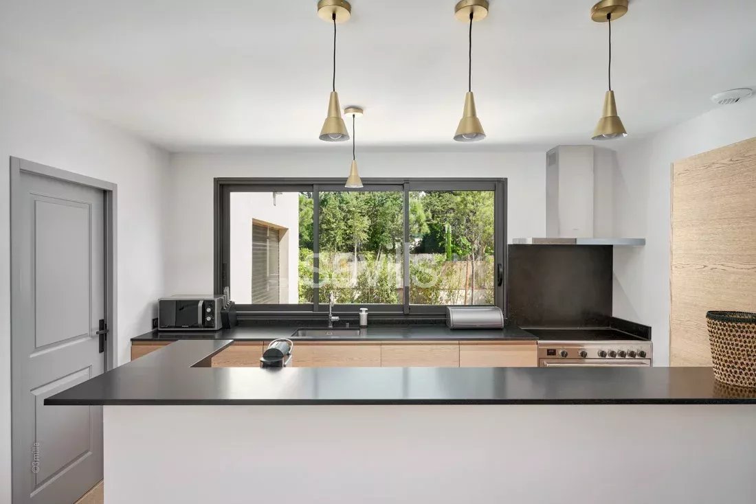 Villa neuve située à Saint-Tropez secteur des Salins, proche à pieds de la plage et à environ 15 minutes à pieds du centre ville.