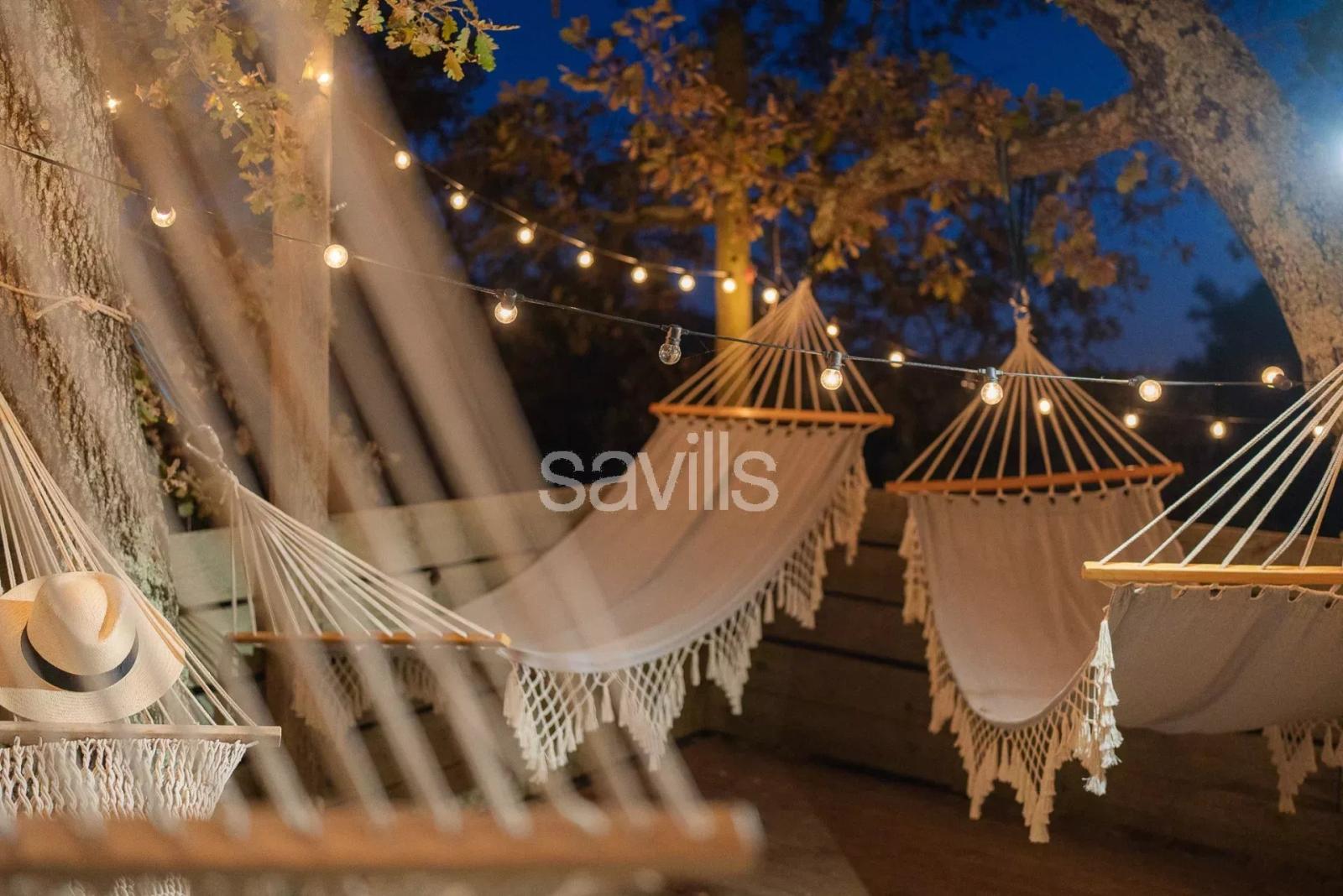 Les extérieurs sont une véritable invitation à la détente et au divertissement : deux piscines chauffées au sel, court de tennis, terrain de pétanque, table de ping-pong, trois lacs, cabane dans les arbres… Tout y respire le calme et la liberté.