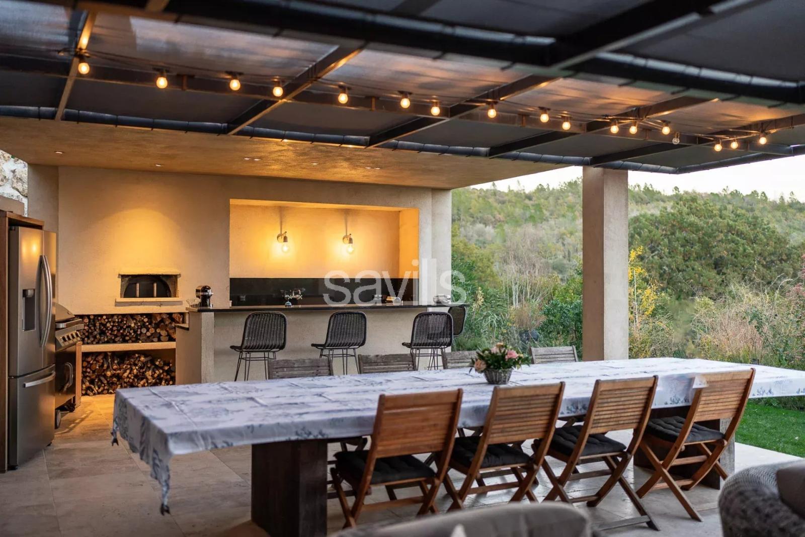 Le rez-de-jardin s’ouvre sur un patio couvert et offre un vaste espace de vie : salon avec cheminée, salle à manger, bureau, cuisine équipée, suite parentale et toilettes invités. Les étages supérieurs abritent des chambres doubles et twins, modulables selon les besoins, offrant vues imprenables et indépendance. Deux suites supplémentaires en rez-de-jardin inférieur complètent l’ensemble.