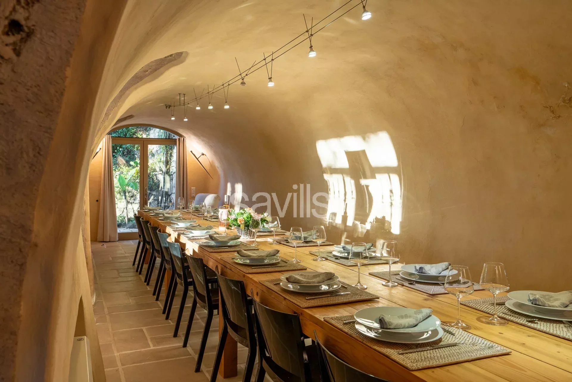 Nichée dans un environnement paisible, cette bastide allie avec subtilité charme authentique et confort moderne. Conçue pour vivre pleinement en extérieur, elle accueille jusqu’à dix-huit personnes dans neuf chambres, toutes dotées de leur propre salle de bains.