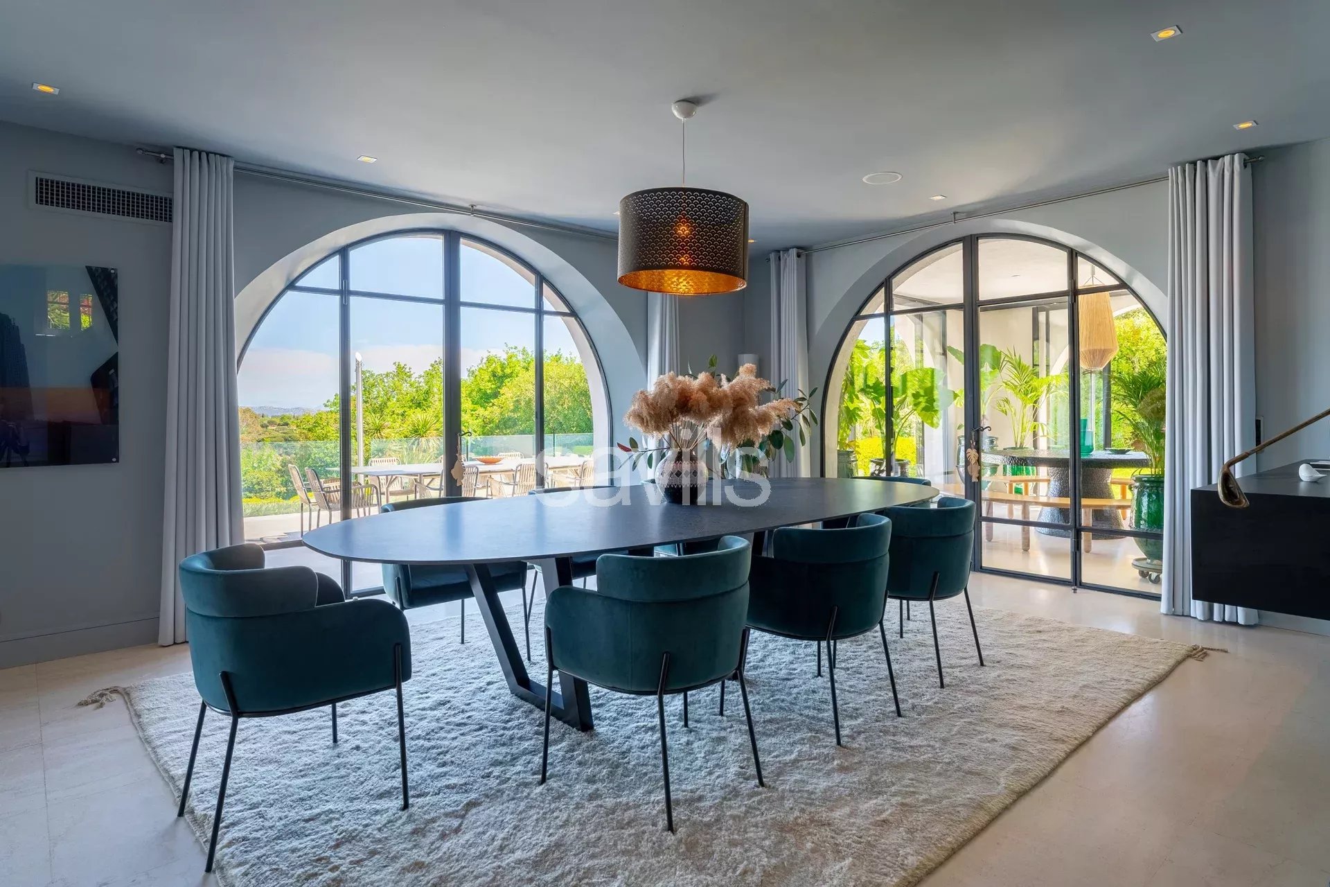 La villa à la décoration raffinée d'environ 600 m2, se compose d'un hall d'entrée, toilettes invités, vaste séjour / salle manger d'environ 120 m2 ouvert une terrasse, cuisine entièrement équipée donnant sur une terrasse couverte, sept chambres en suite possédant chacune leur terrasse.
