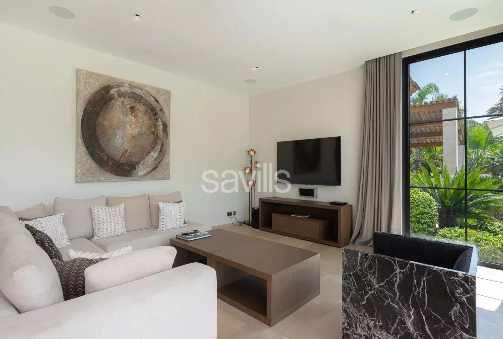 Baignée de lumière grâce à ses larges baies vitrées à galandage, elle offre une vie dedans-dehors harmonieuse autour d’un jardin paysager avec vue sur les collines. Le rez-de-jardin comprend une vaste pièce de vie avec double séjour, cuisine ouverte et salle à manger, deux chambres en suite, ainsi qu’une buanderie et un garage.