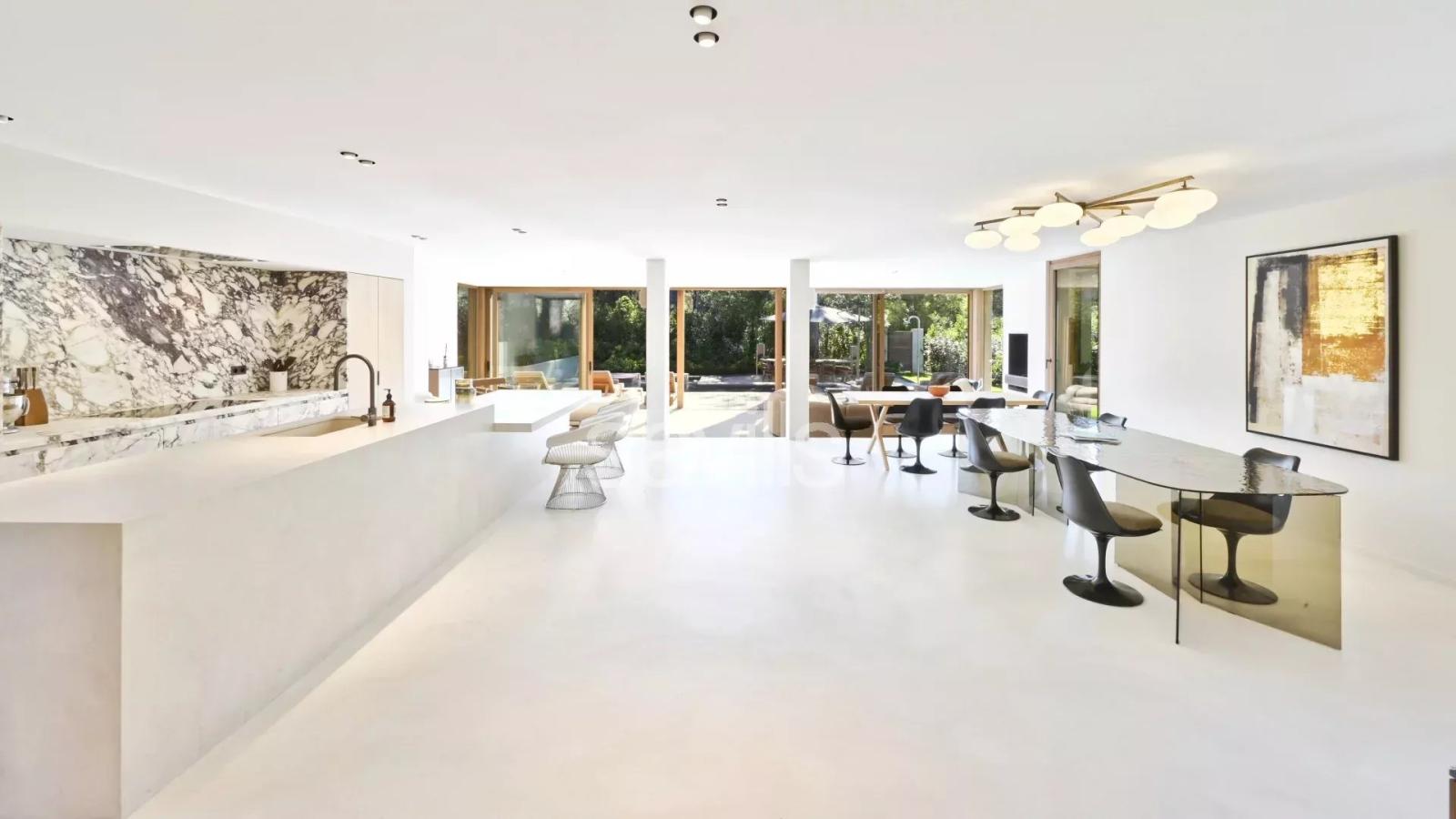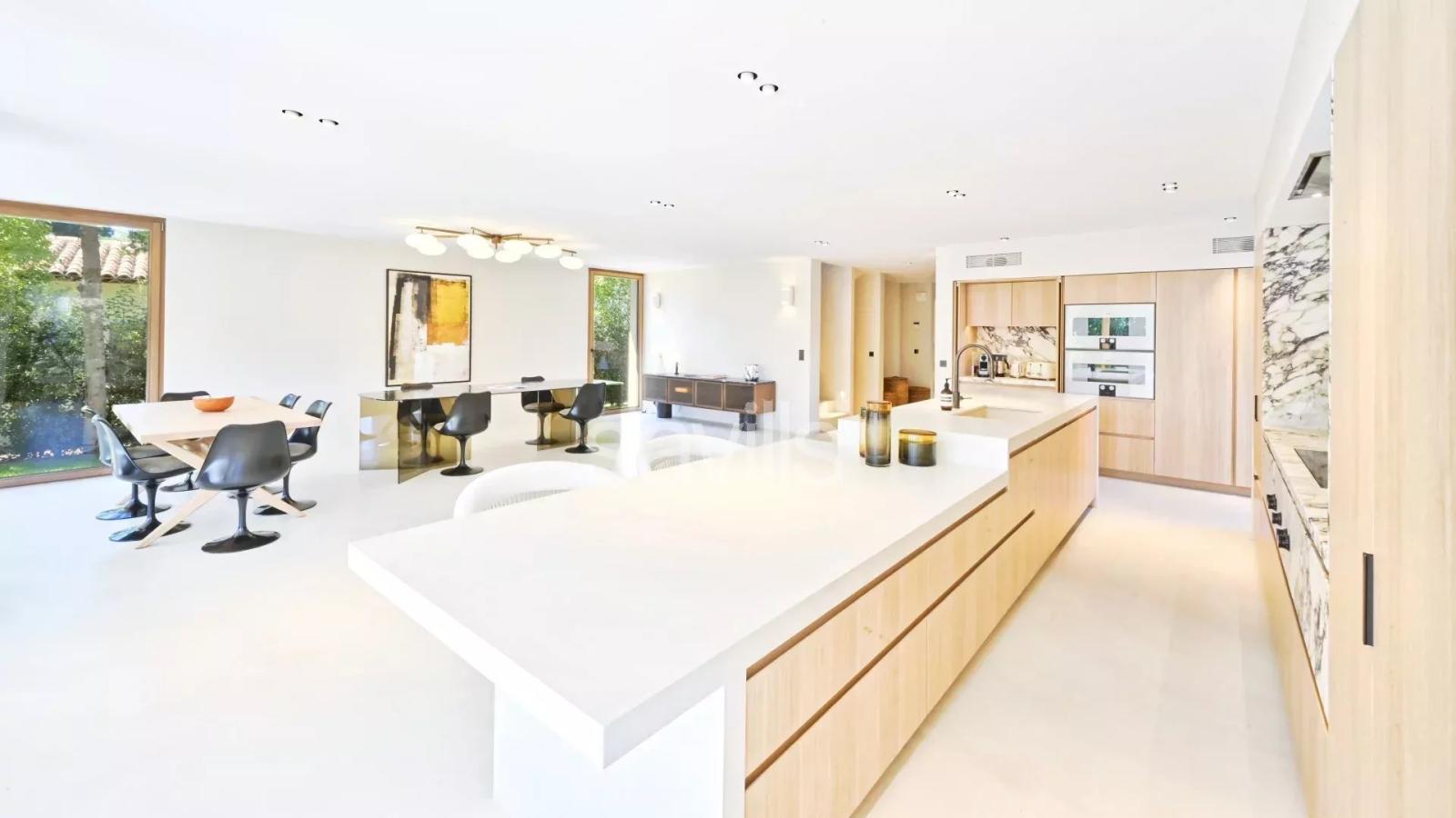 Dotée d'une superficie de plus de 350m², elle offre une atmosphère contemporaine et raffinée, sublimée par des matériaux de qualité et des prestations soignées.