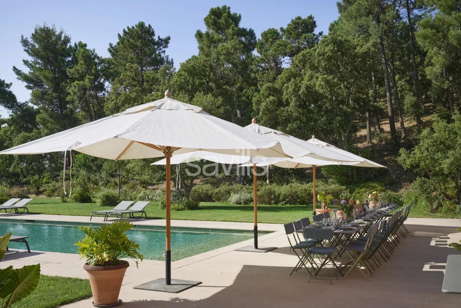 Le vaste pool house vous permettra de vivre de merveilleux moments de partage, tout en profitant d'une vue imprenable sur la mer et Saint-Tropez. Vous pourrez également profiter d'une immense piscine de 20m de long.