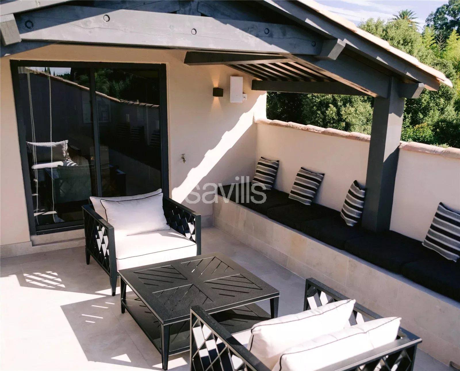 Vous apprécierez particulièrement la grande piscine et la spacieuse terrasse d'été entièrement équipée ainsi que l'accès direct vers la plage de Sylvabelle.