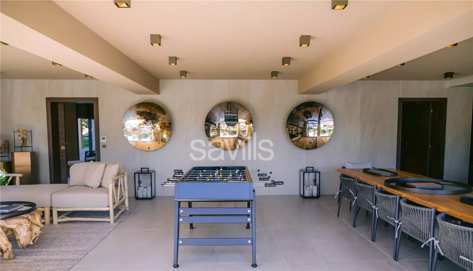 Ce niveau comprend trois chambres avec vue sur le jardin, salle de bains et dressing, une salle de télévision, une salle de massage, une salle de fitness, une buanderie et des toilettes invités.