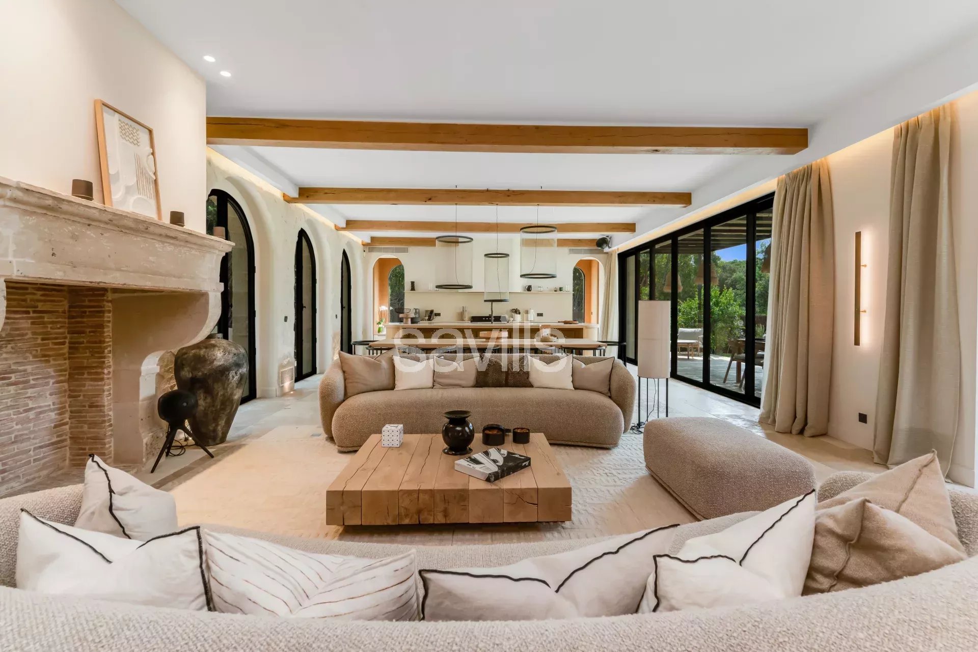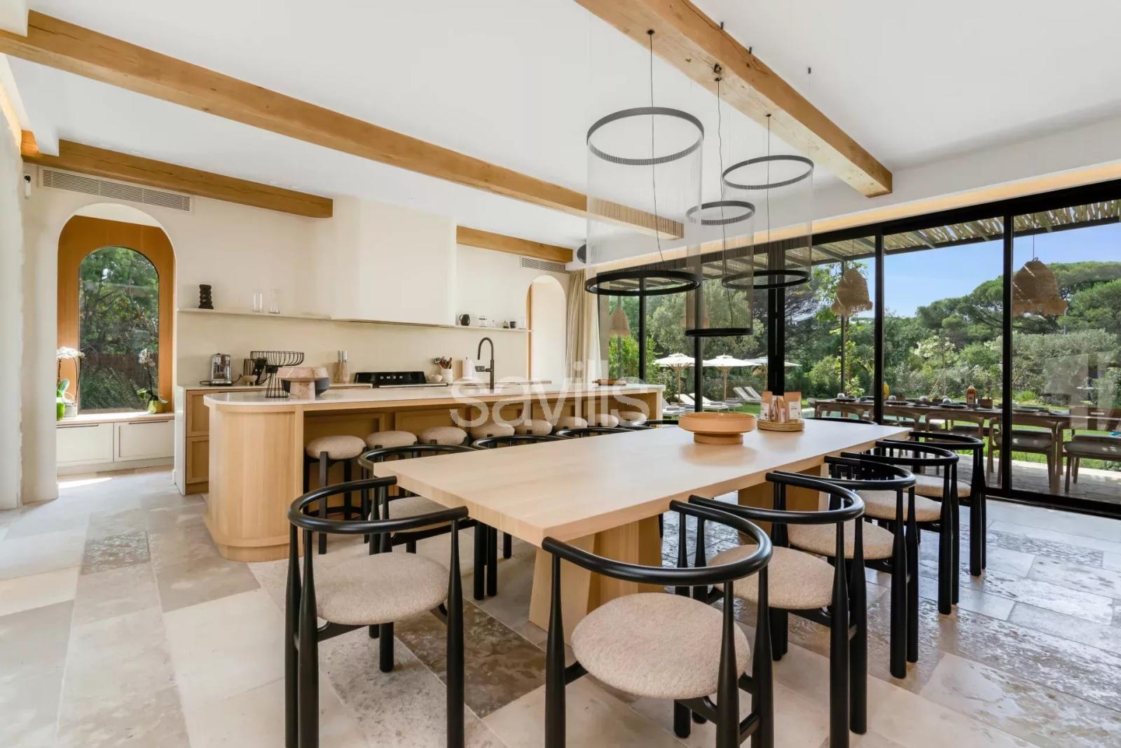 À seulement 5 minutes à pied de la plage de Pampelonne et à 5 km de Saint-Tropez, cette luxueuse propriété de 380 m² vous accueille dans un cadre privé et sécurisé, mêlant charme provençal et confort contemporain.