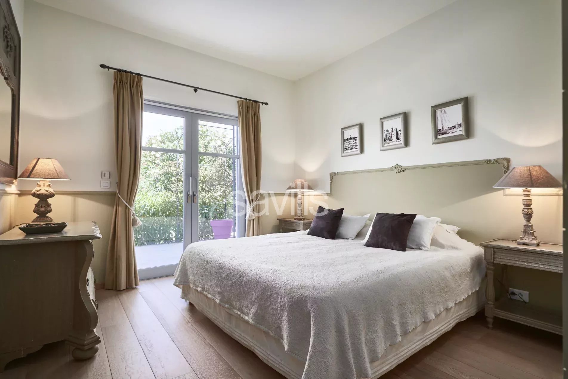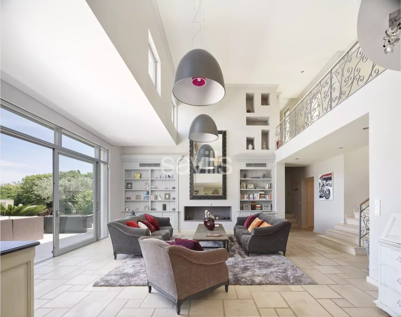 Située dans un domaine privé et sécurisé, cette villa de 400 m² offre une vue imprenable sur la mer. Elle dispose de six chambres avec salles de bains privatives, de deux salons, d’une salle à manger et d’une cuisine équipée, le tout dans une ambiance élégante et lumineuse.