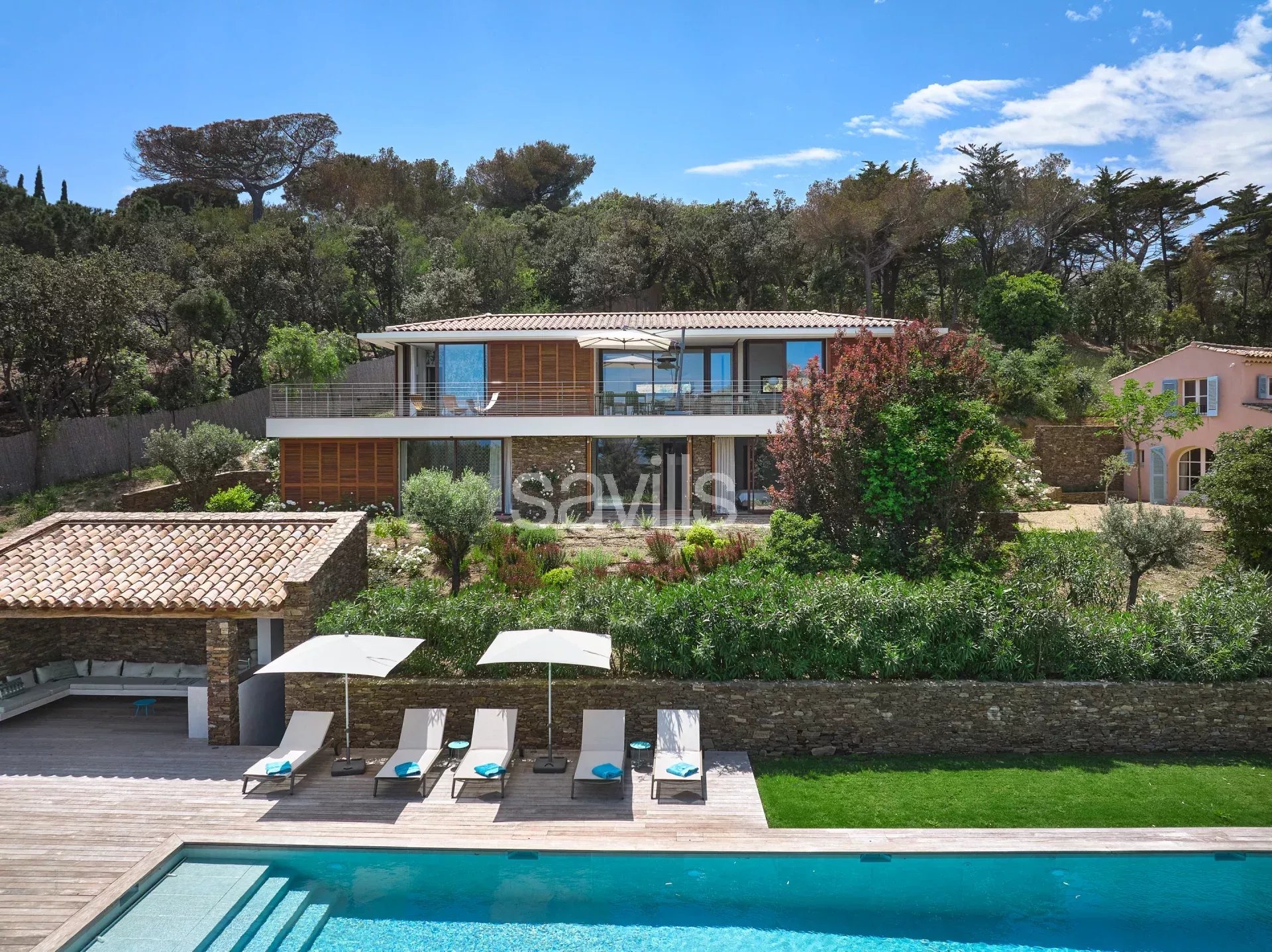 Dans le secteur prisé des Salins, en pleine nature sauvage, découvrez cette propriété unique avec une vue imprenable sur la mer. Cette villa promet des vacances inoubliables à seulement 3 minutes à pied de la plage et à 10 minutes en voiture du centre de Saint-Tropez.