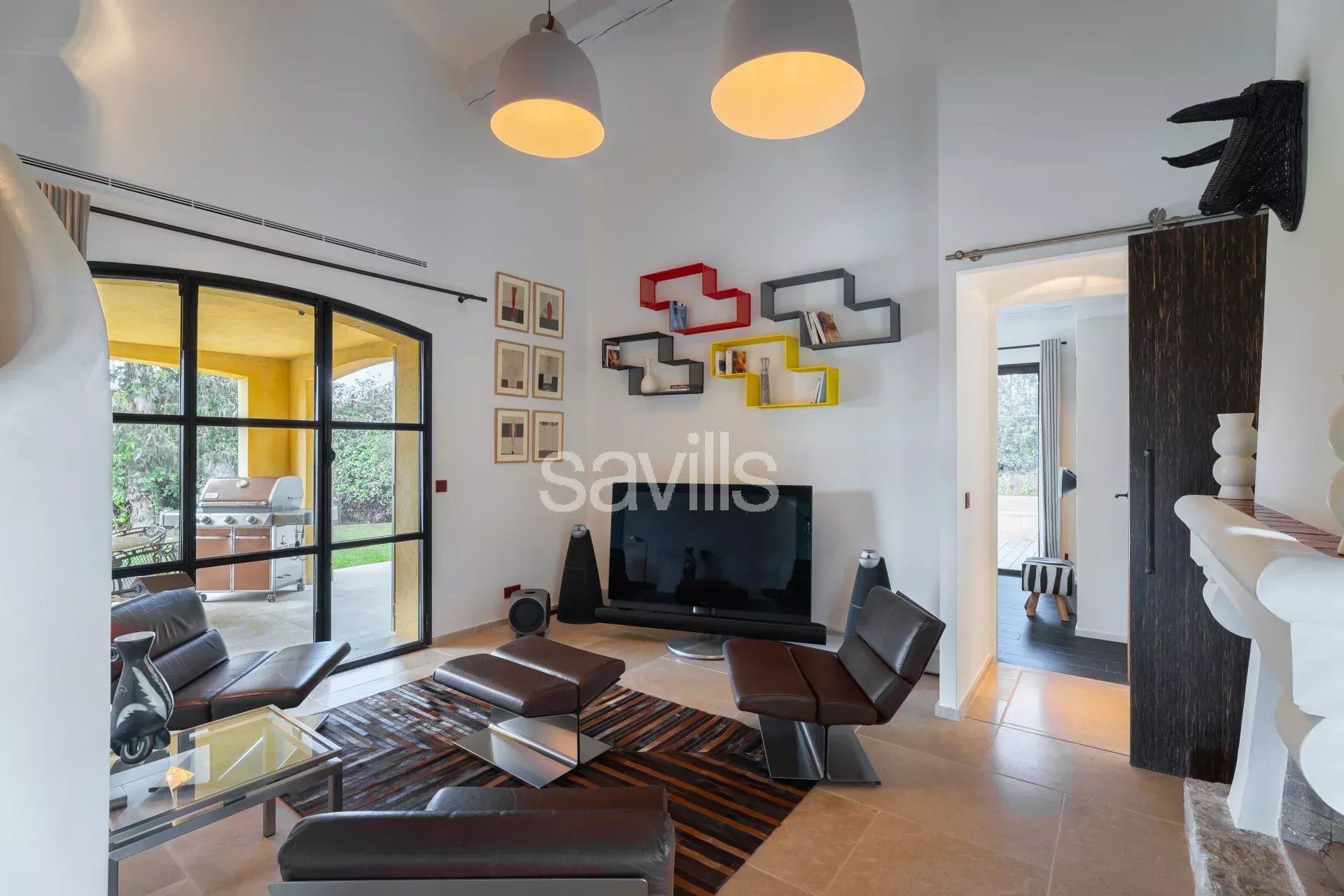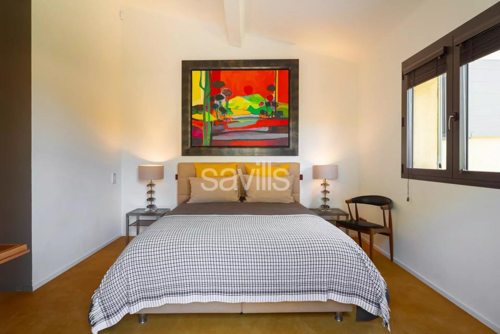 Elle dispose d’un vaste séjour lumineux, comprenant un salon TV et une salle à manger, ouvert sur la terrasse et la piscine, ainsi qu’une cuisine entièrement équipée. Un second salon, avec télévision et cheminée, complète l’espace de vie. Côté nuit, cinq chambres élégantes, chacune avec sa salle de bains ou salle de douche attenante, assurent confort et intimité.
