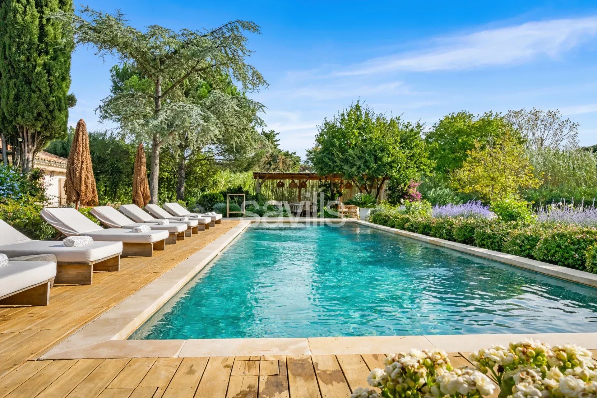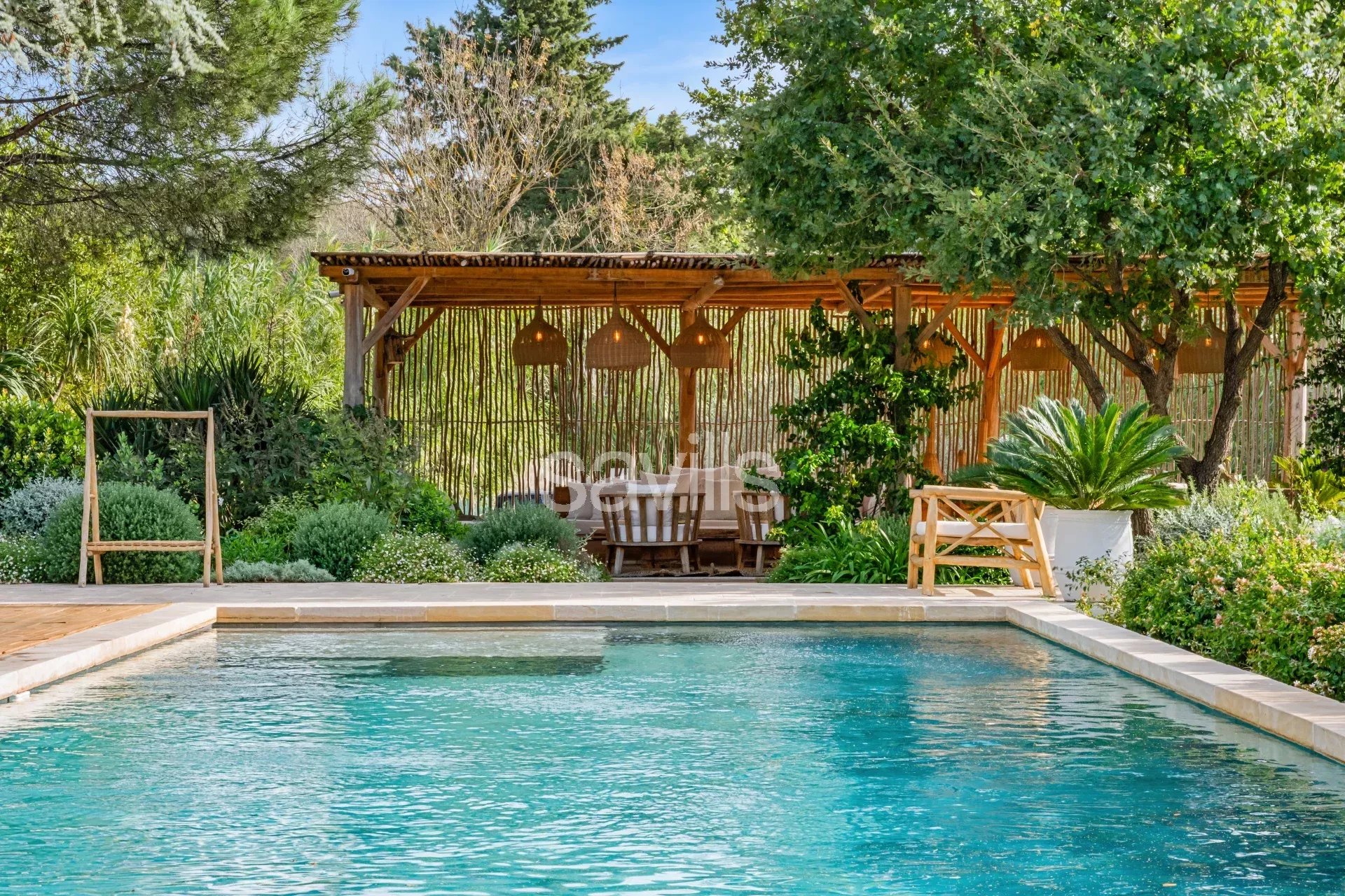 L’extérieur est un véritable lieu de détente et de convivialité. La piscine de 16 x 5 mètres, bordée de beds confortables, invite à de longs après-midis ensoleillés. À proximité, une salle à manger propice à vos repas conviviaux, tandis que la terrasse couverte avec salon de jardin offre un cadre cosy pour prolonger vos soirées. L'autre côté du jardin allie bien-être et loisirs avec un espace fitness ombragé avec tables de massage ainsi qu'un terrain de pétanque.