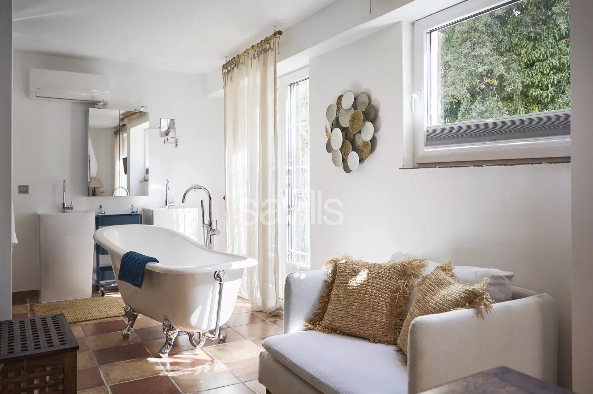 À l'abri de tous les regards, cette propriété vous promet un séjour inoubliable où chacun de vos convives pourra bénéficier d'un espace pour se ressourcer. Le terrain de près de 2,5 hectares est paysagé avec de multiples essences méditerranéennes et aménagé avec de nombreuses passerelles permettant d'explorer tous les recoins de cette superbe propriété et d'apprécier la nature environnante.