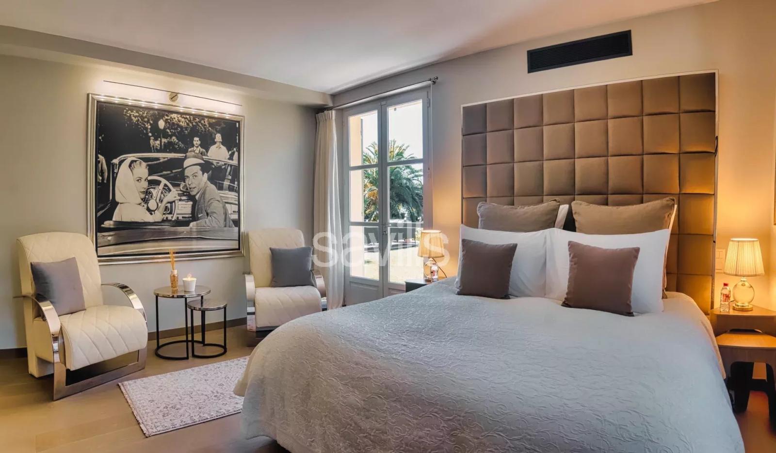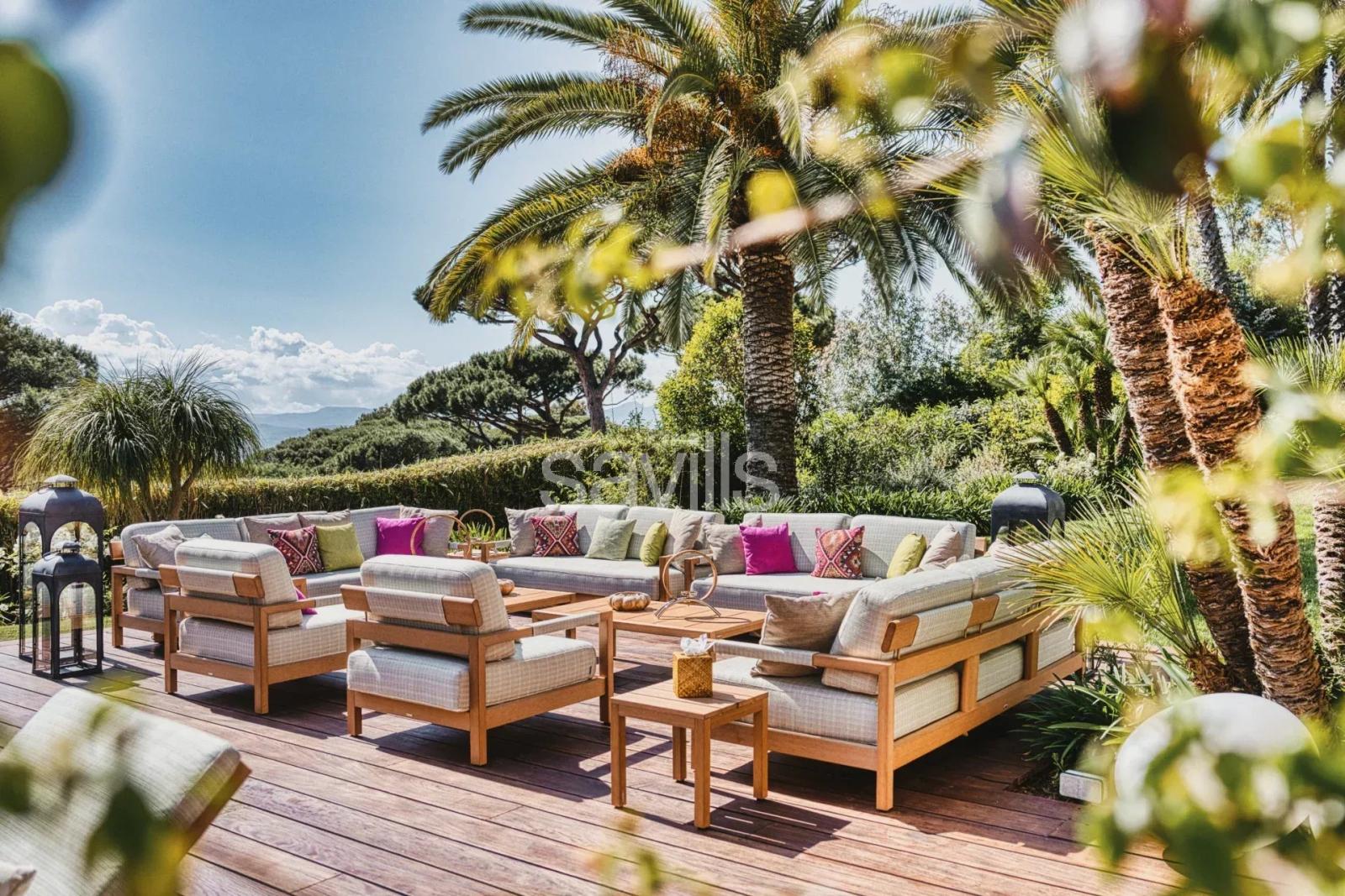 La villa dispose d'une vue mer sur la baie des Canoubiers et propose six chambres en suite, une cuisine d'été, espace Fitness équipé d'appareils TECHNOGYM, table de Baby Foot, Ping Pong, SAMSUNG Smart TV, SONOS Sound System, climatisation dans toutes les pièces, piscine à débordement avec mouvement de nage à jets, jacuzzi, vue imprenable depuis la terrasse de la piscine, jardin tropical, potager, arbres fruitiers, plantes aromatiques, abri de voiture couvert de quatre places.